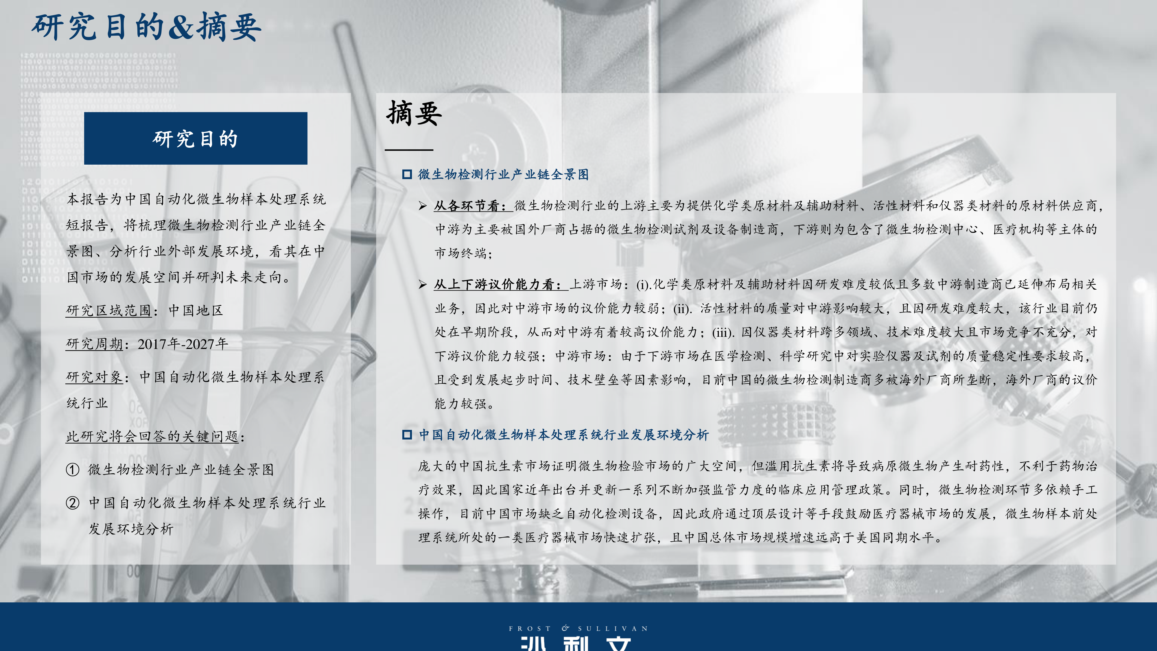 本报告基于沙利文公司对中国自动化微生物样本处理系统市场的分析,核心观点如下:
