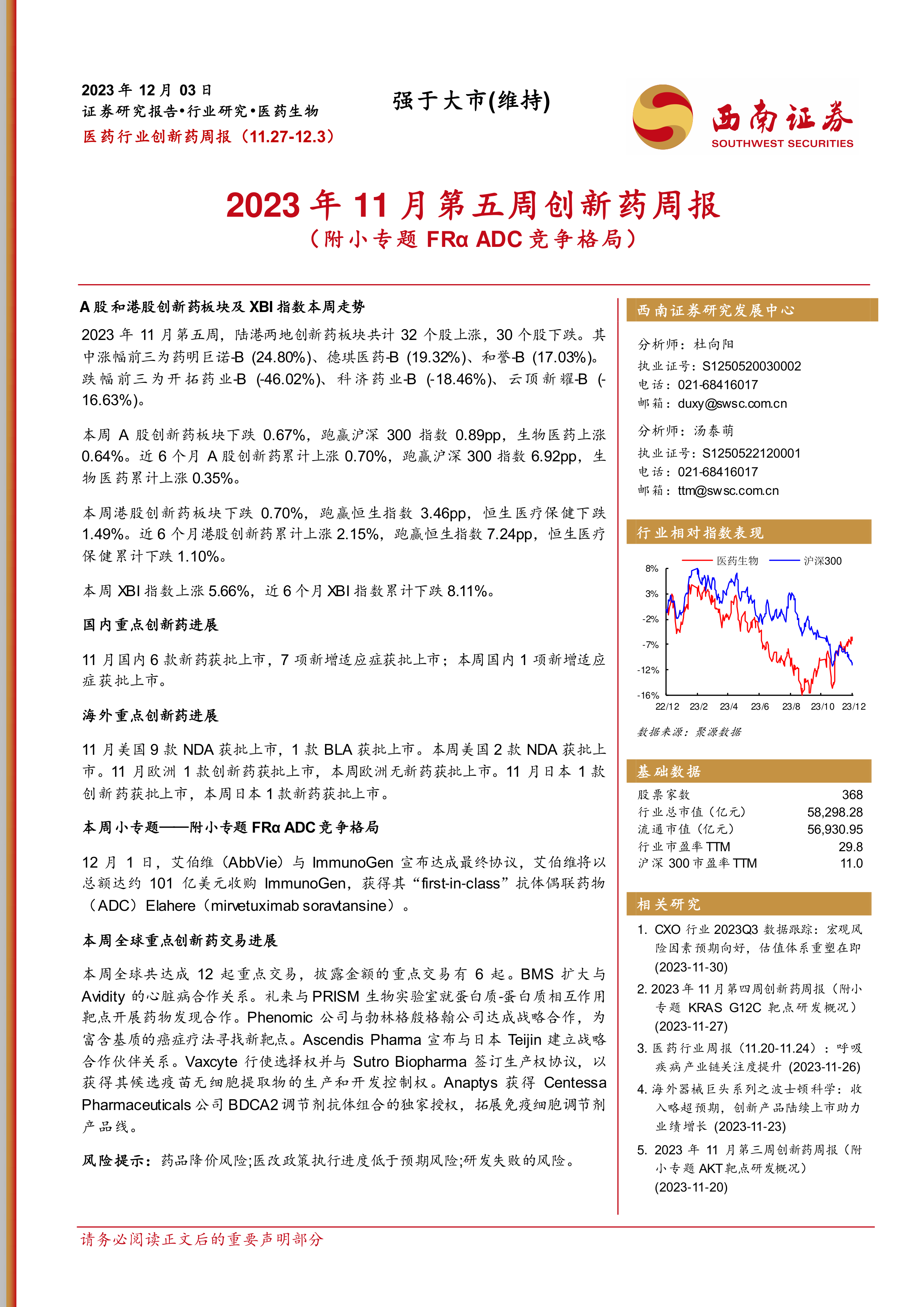 医药行业创新药周报:2023年11月第五周创新药周报(附小专题FRα ADC竞争格局)