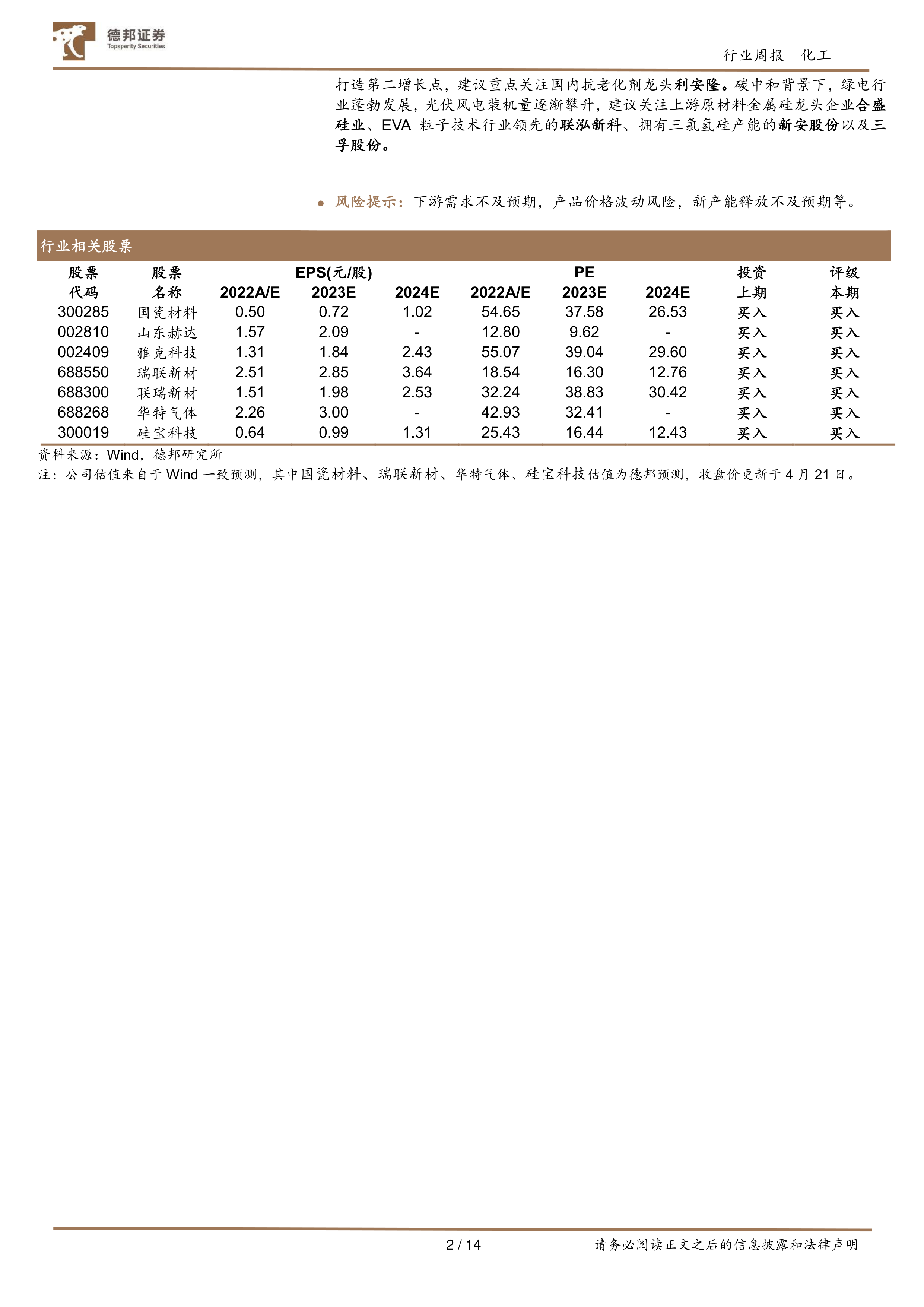 报告最后列出了下游需求不及预期、产品价格波动风险、新产能释放不及预期等风险提示,提醒投资者注意投资风险。