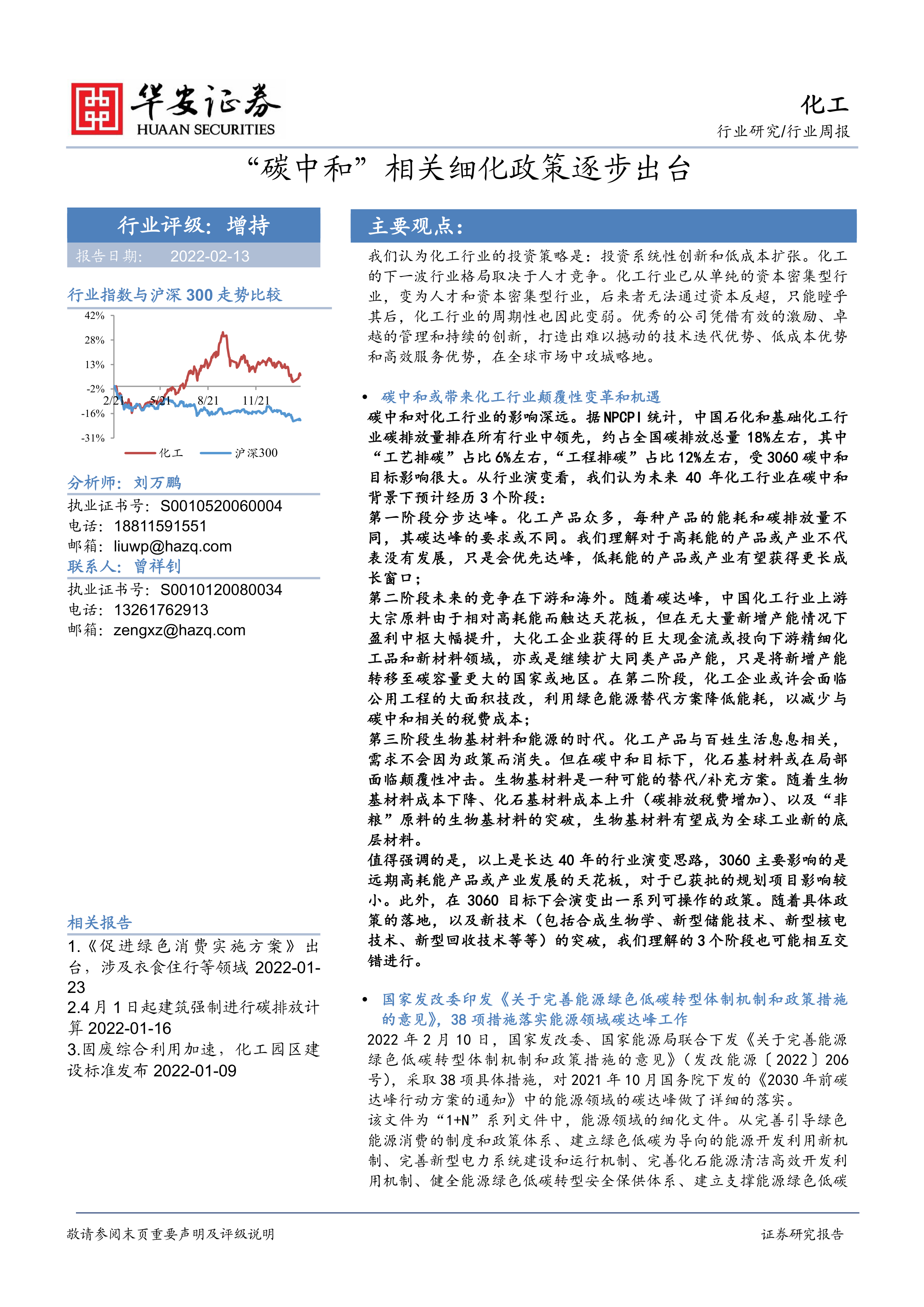 化工行业周报:“碳中和”相关细化政策逐步出台