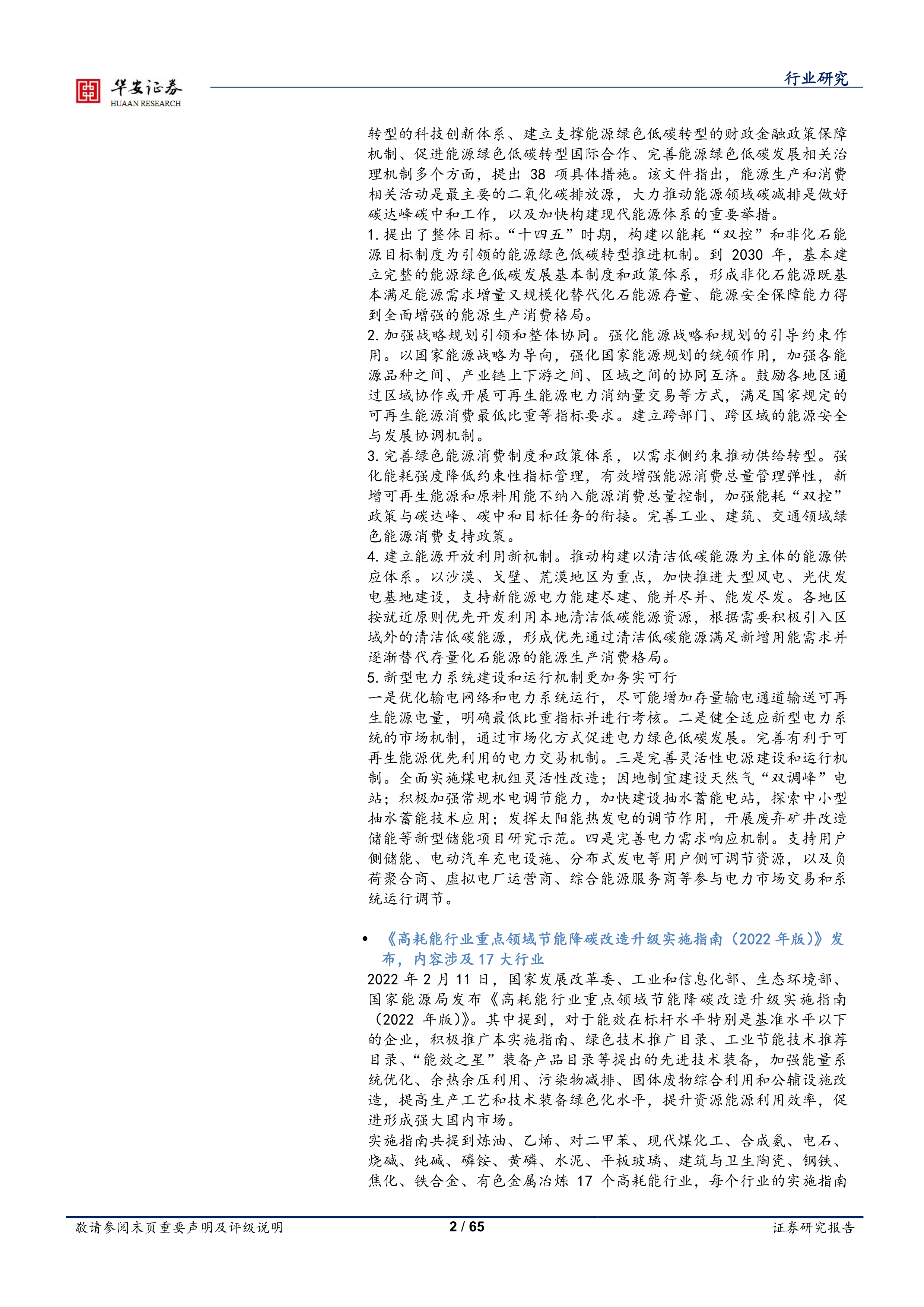 2022年2月10日,国家发改委、国家能源局联合下发《关于完善能源绿色低碳转型体制机制和政策措施的意见》(发改能源〔2022〕206号),采取38项具体措施,对2021年10月国务院下发的《2030年前碳达峰行动方案的通知》中的能源领域的碳达峰做了详细的落实。