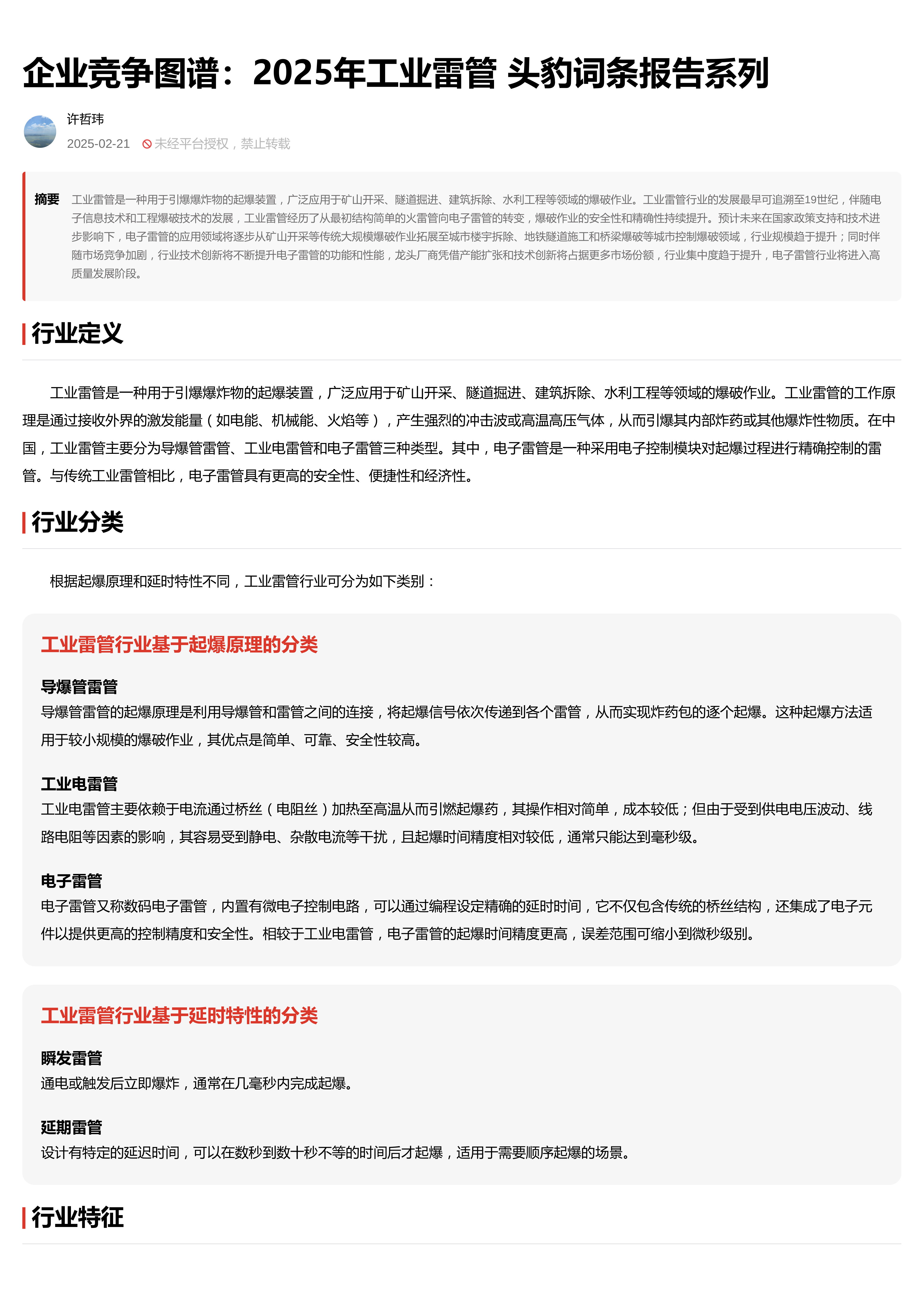 企业竞争图谱:2025年工业雷管 头豹词条报告系列