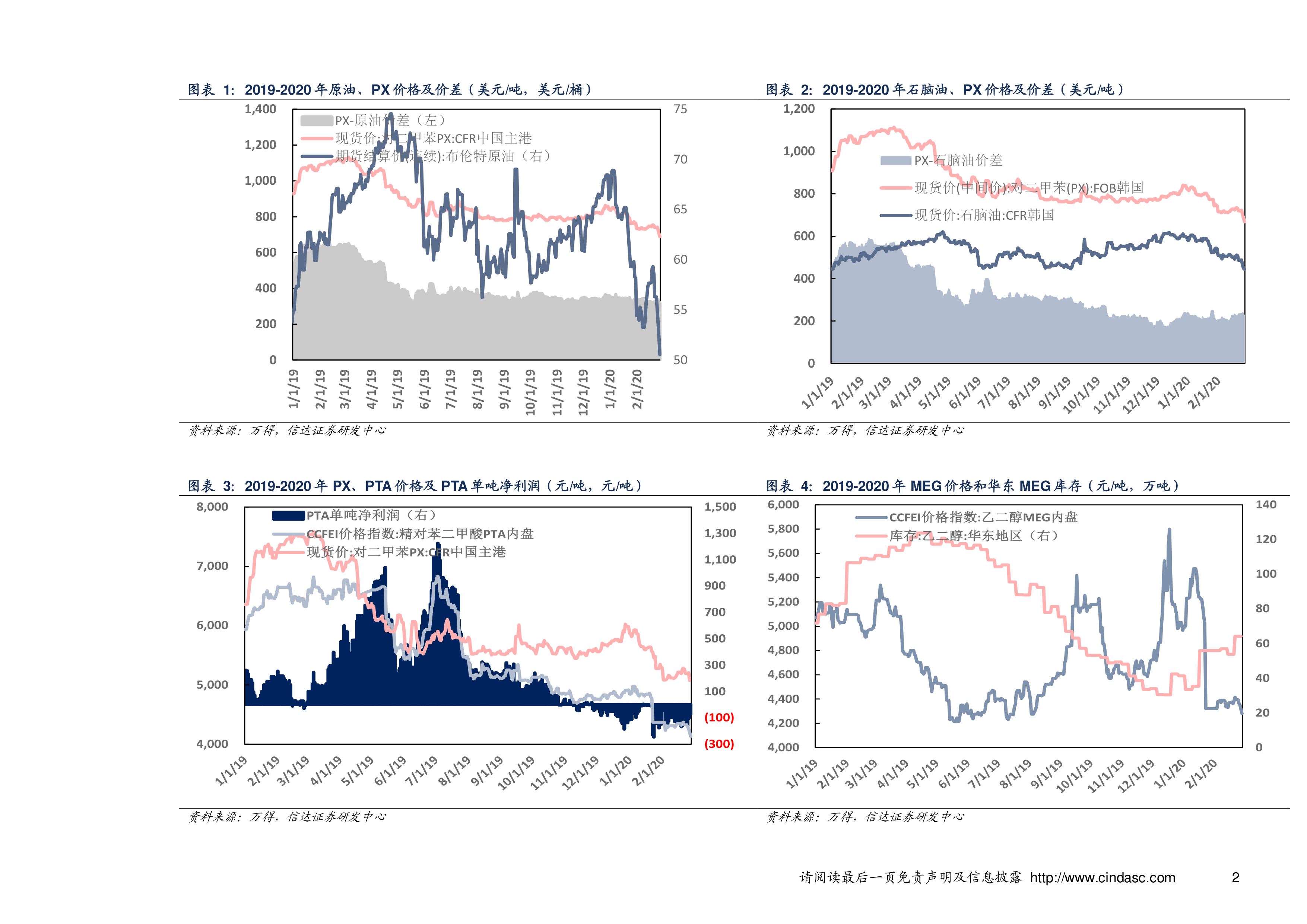 报告首先分析了PX的价格走势及其与原油、石脑油的价差。受疫情影响,国际原油价格暴跌,带动PX价格下跌。但PX与石脑油的价差有所扩大,这反映了市场供需关系的变化。