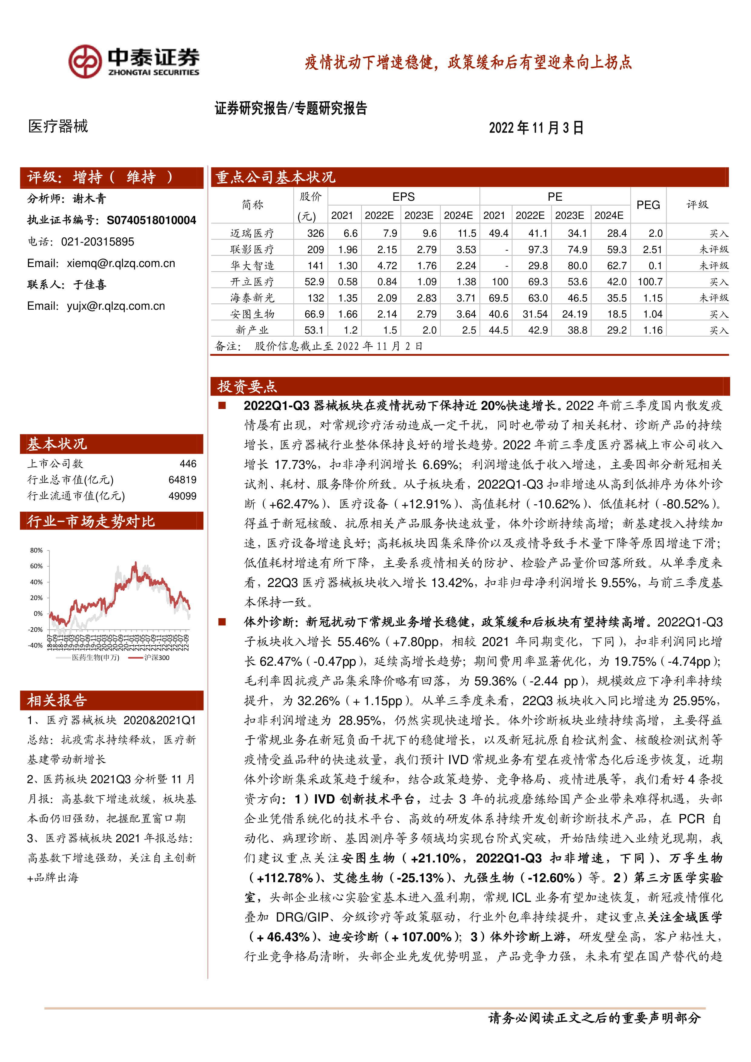 医疗器械专题研究报告:疫情扰动下增速稳健,政策缓和后有望迎来向上拐点
