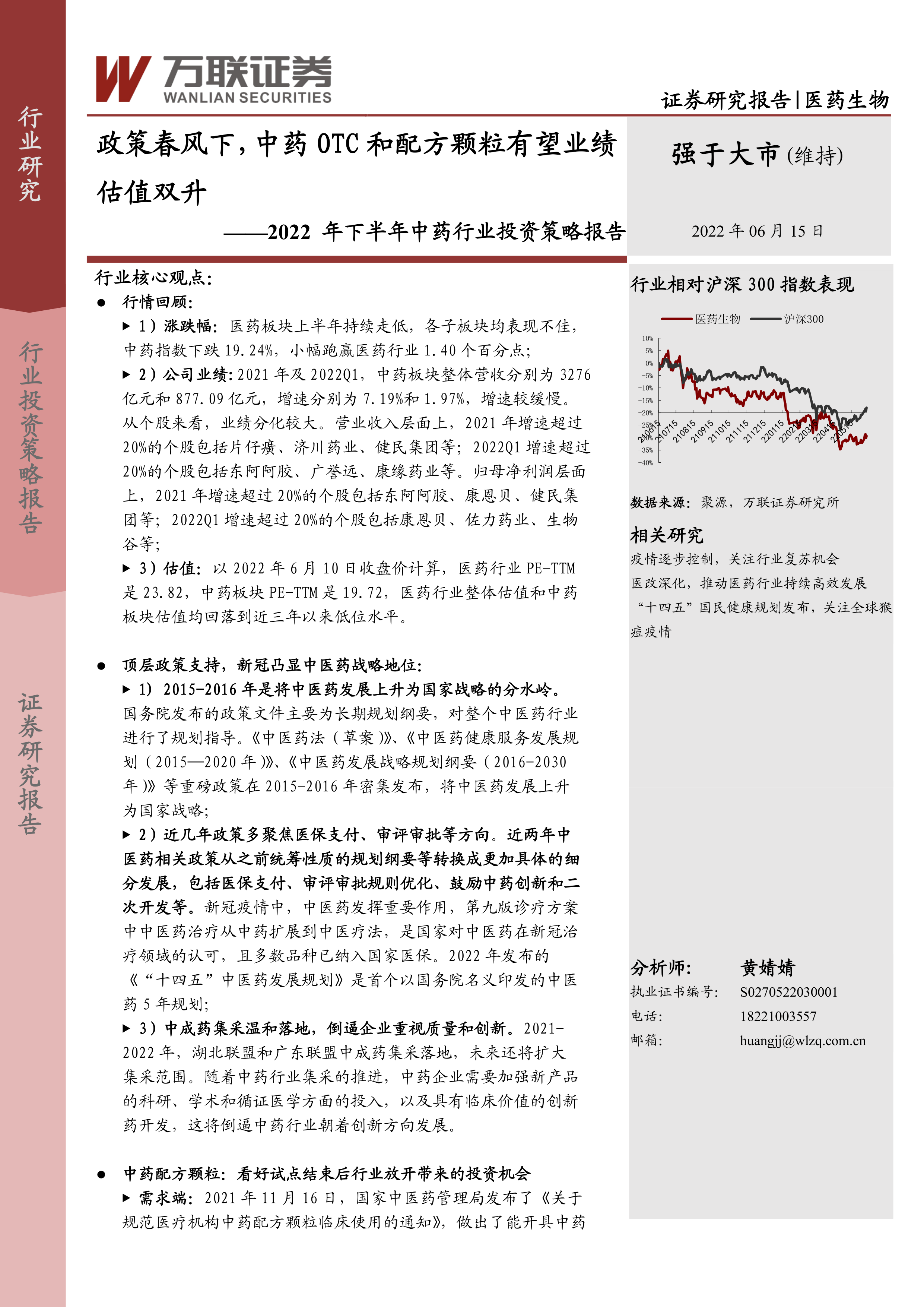 2022年下半年中药行业投资策略报告:政策春风下,中药OTC和配方颗粒有望业绩估值双升