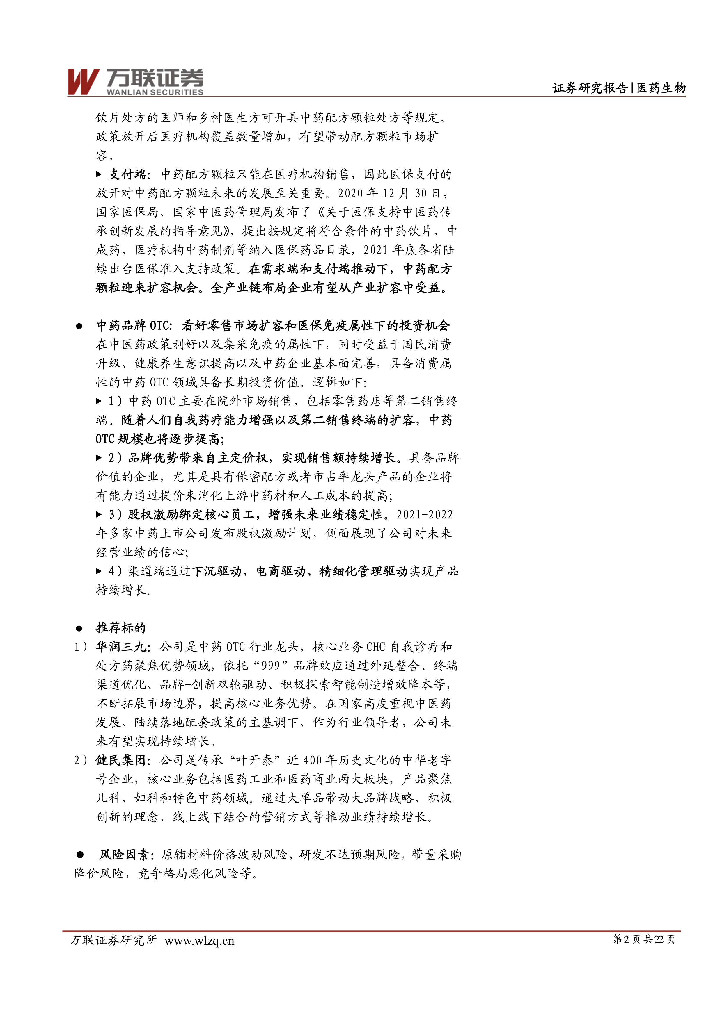 报告最后推荐了华润三九和健民集团两家公司,并对投资风险进行了提示。