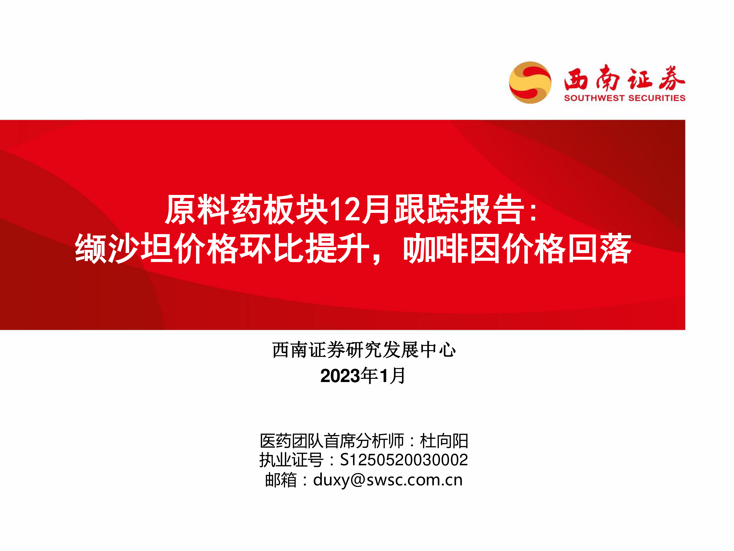 原料药板块12月跟踪报告:缬沙坦价格环比提升,咖啡因价格回落