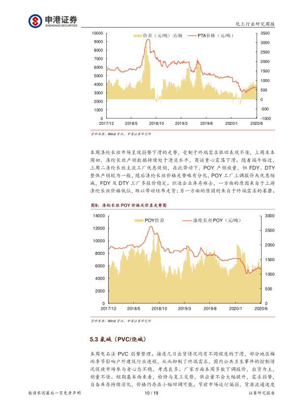 报告对聚氨酯系列产品(纯MDI、聚合MDI、TDI)、PTA-涤纶长丝产业链、氯碱(PVC/烧碱)、化肥(尿素、磷酸一铵、磷酸二铵)、农药(草甘膦、麦草畏、草铵膦)、纯碱、粘胶短纤、氨纶、钛白粉以及其他一些化工产品(丁二烯、丁苯橡胶、苯胺、纯苯、甲醇、醋酸、己二酸、丁辛醇)的价格及价差走势进行了详细的分析,并结合供需关系、成本变化等因素,对未来价格走势进行了预测。 这些分析都配有相应的图表数据支持。