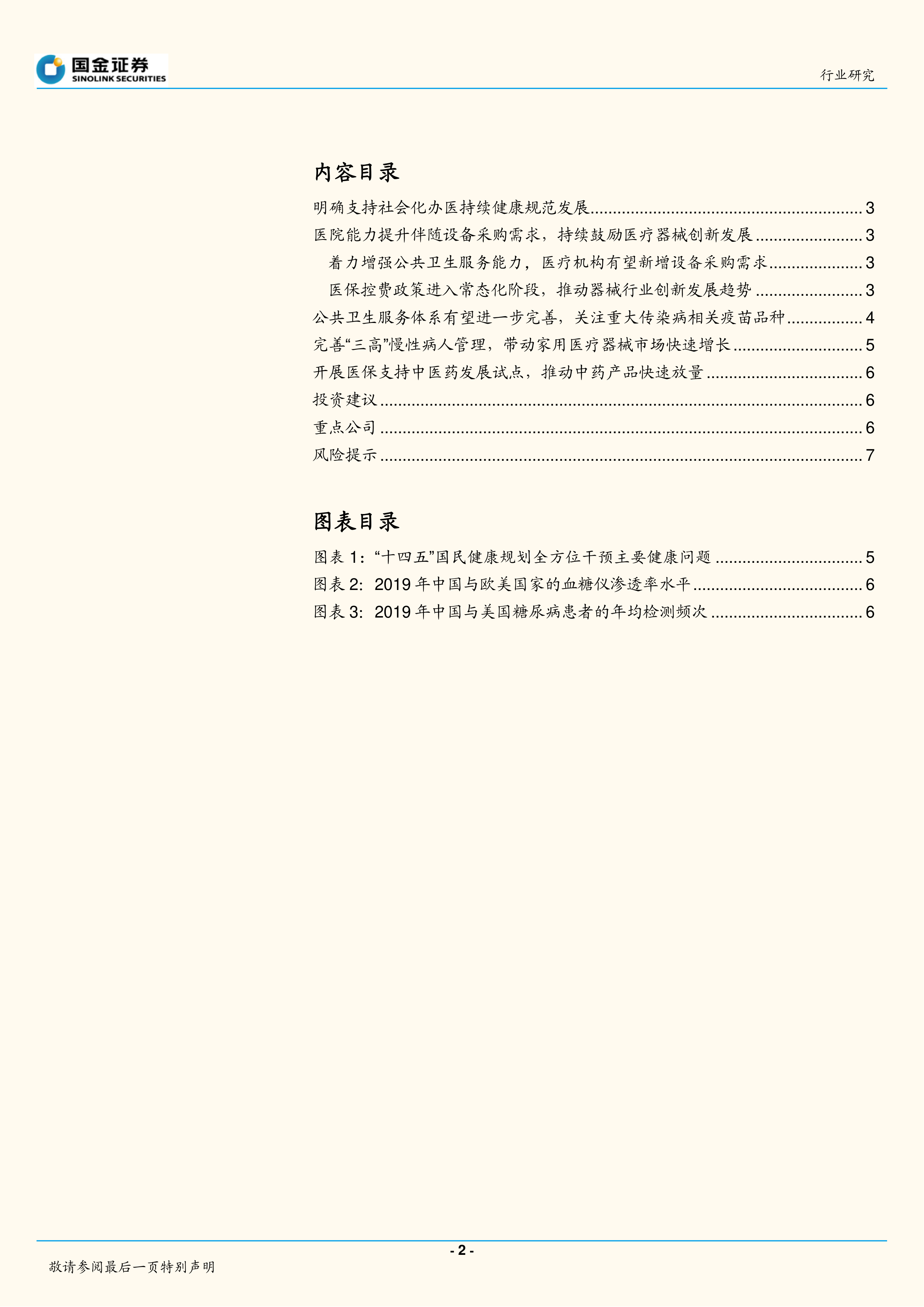 着力增强公共卫生服务能力,医疗机构有望新增设备采购需求;公共卫生服务体系有望进一步完善,关注重大传染病相关疫苗品种;新冠肺炎疫情防控坚持“动态清零”总方针,检测成为常态化需求;“十四五”国民健康规划强调预防为主,强化基层,多种传染病防控持续深化推进。