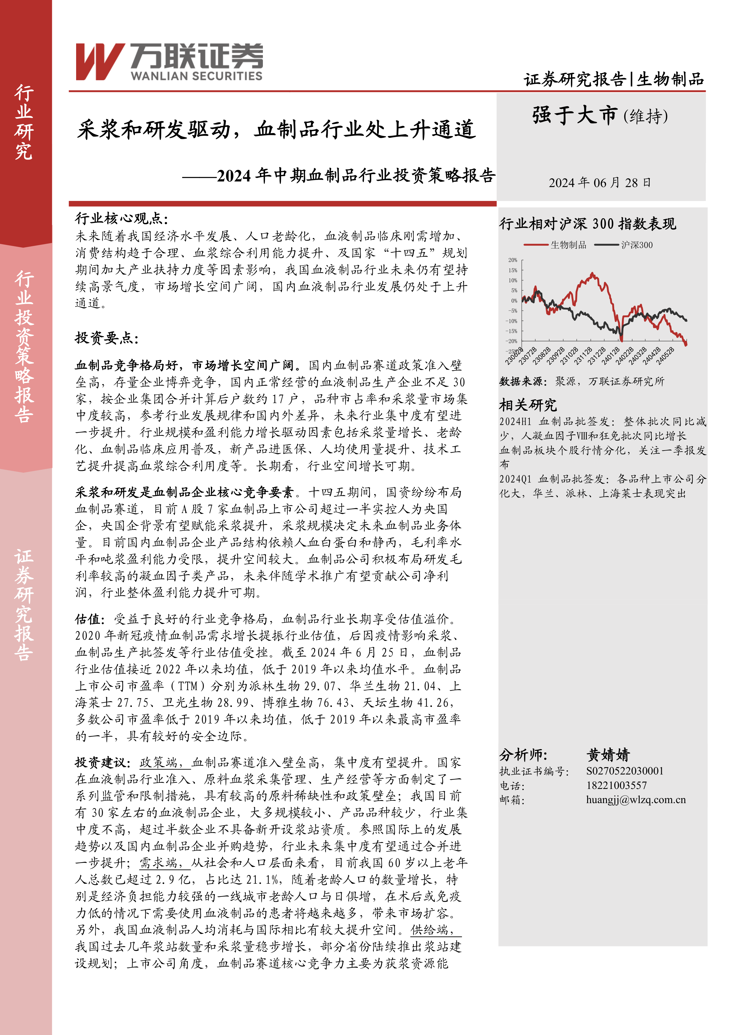 2024年中期血制品行业投资策略报告:采浆和研发驱动,血制品行业处上升通道