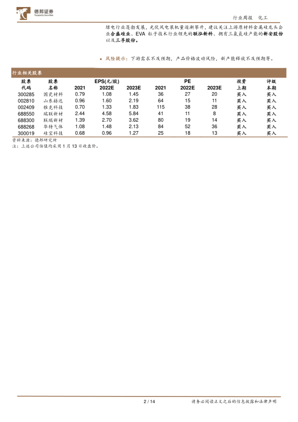 风险提示:下游需求不及预期,产品价格波动风险,新产能释放不及预期等。