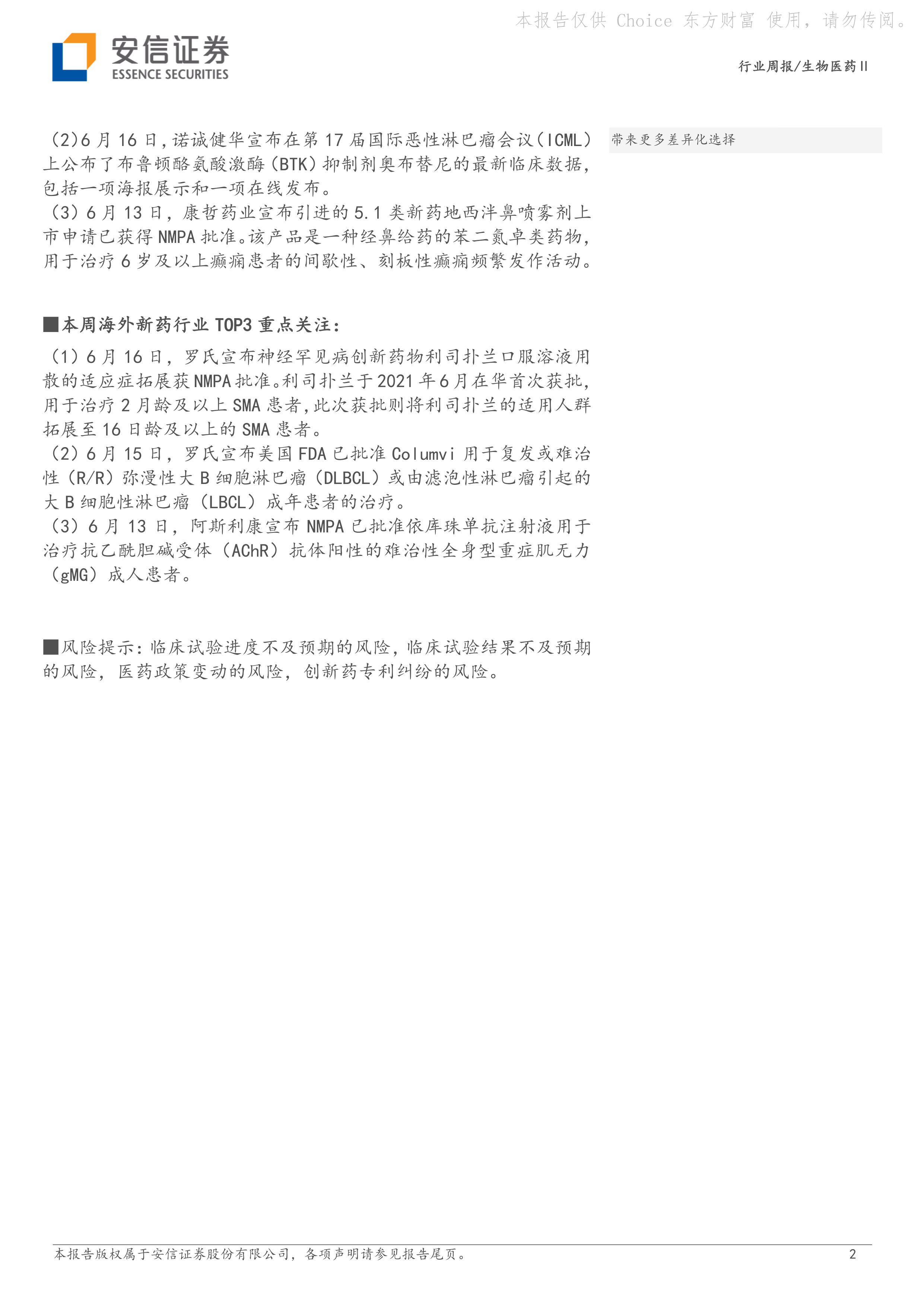 风险提示:临床试验进度不及预期的风险,临床试验结果不及预期的风险,医药政策变动的风险,创新药专利纠纷的风险。