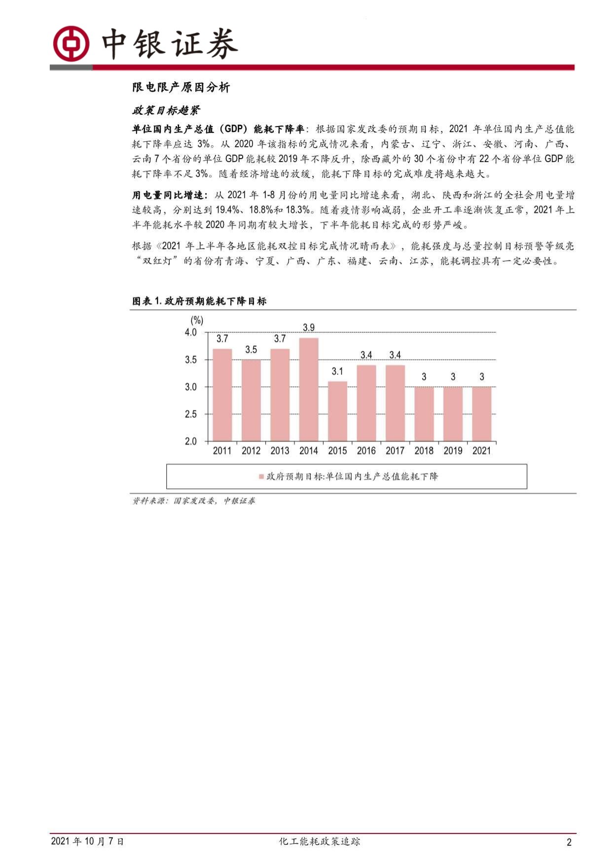 我们认为本轮限电限产主要原因有三点:能耗政策目标的趋紧、电力供应缺口与煤炭价格的不断走高。2021年上半年全国能耗水平增长显著,在经济增速放缓的背景下,单位GDP能耗下降率等政策目标完成难度逐渐增大。同时,根据中电联数据,2021年1-8月份,全国发电量53,894亿千瓦时,全国全社会用电量54,704亿千瓦时,电力供应存在一定缺口。而我囯仍主要以火力发电为主,煤炭价格不断走高,供应偏紧也加剧了各地用电紧张的局面,戴至9月30日,动力煤市场均价达1,153元/吨。