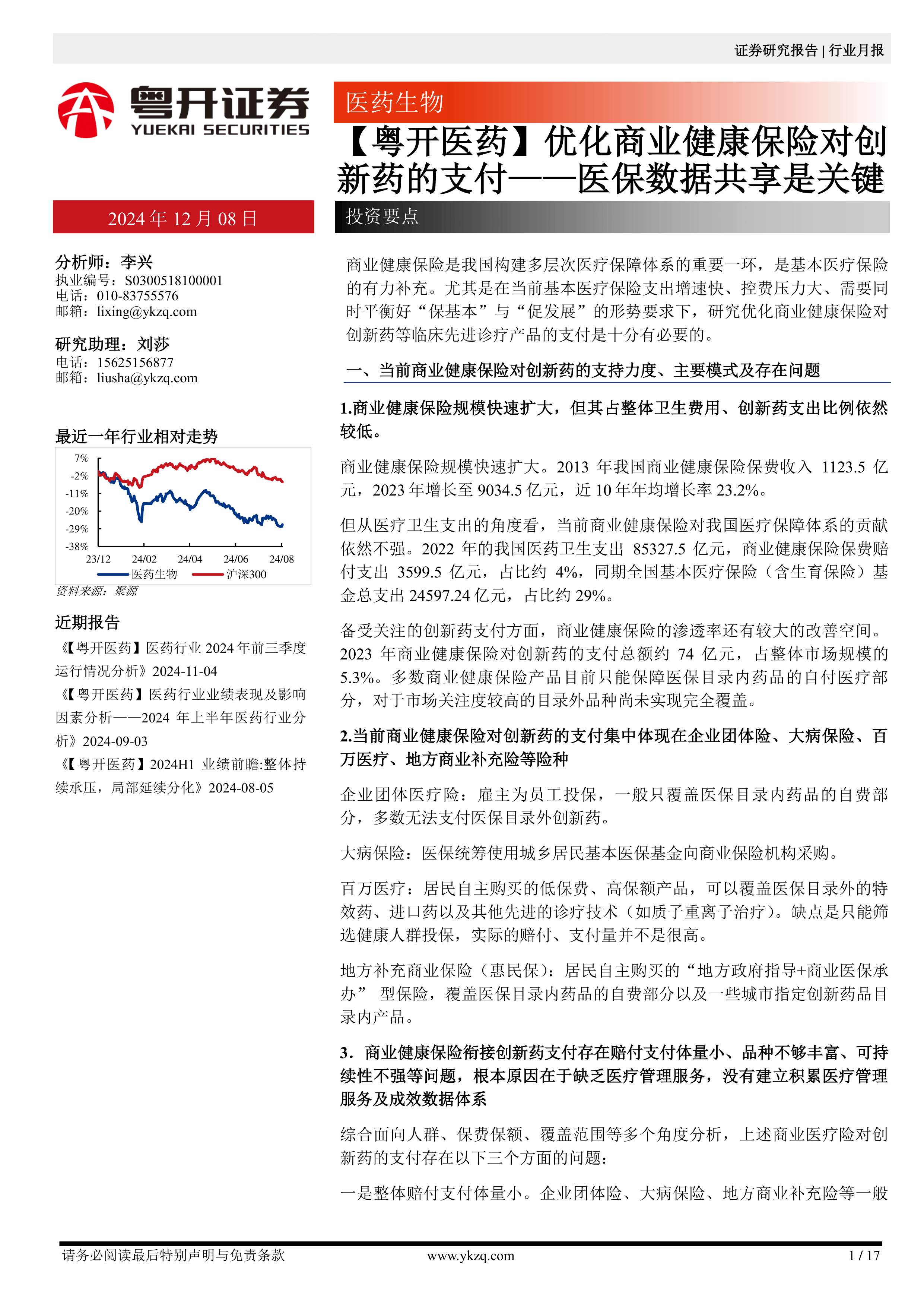 【粤开医药】优化商业健康保险对创新药的支付——医保数据共享是关键