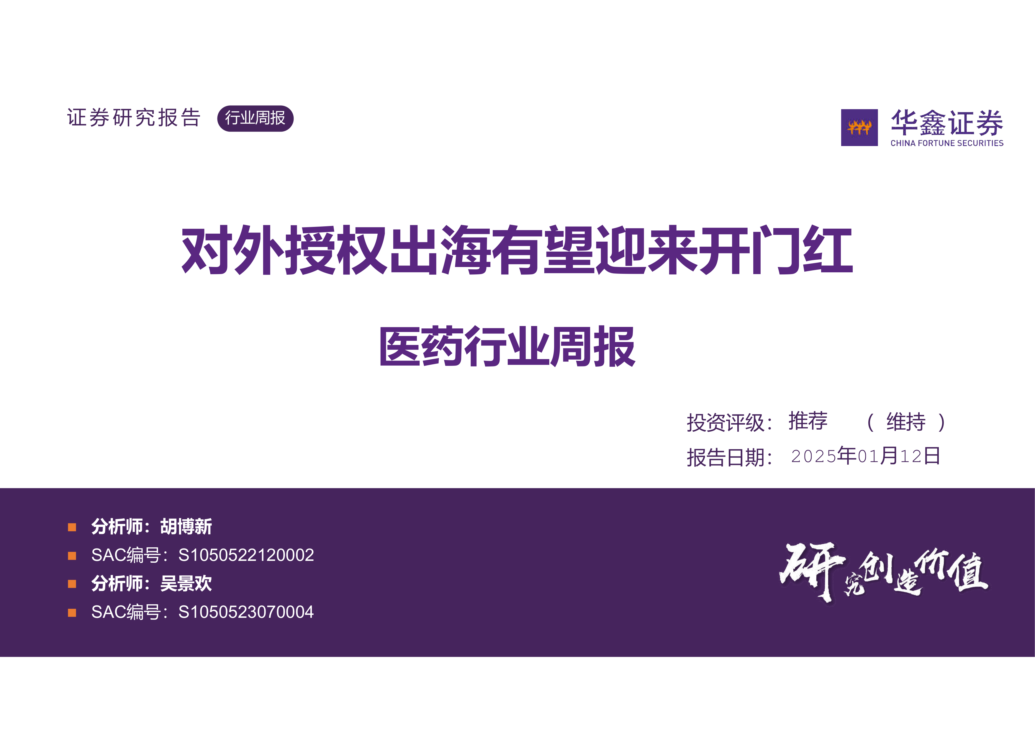 本报告的核心观点是:2025年中国医药行业有望迎来开门红,主要体现在创新药对外授权合作持续火热、流感高峰期到来带动呼吸道检测需求增长、医保协同试点逐步铺开拓宽创新药价值天花板以及零售药房出清加速龙头受益等方面。 报告同时对行业发展趋势进行了分析,并推荐了部分具有投资价值的股票。
