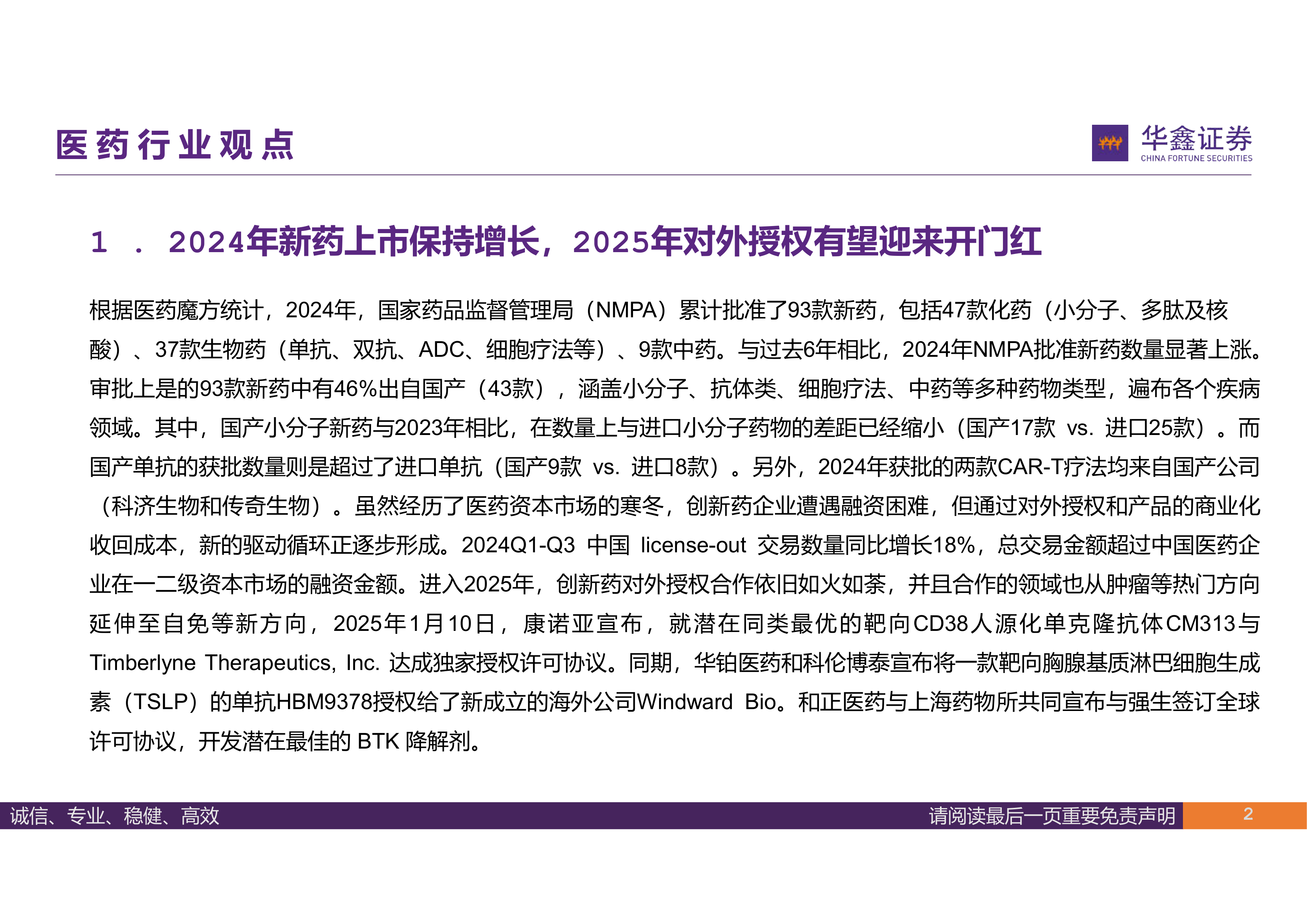 1.2024年新药上市保持增长,2025年对外授权有望迎来开门红
