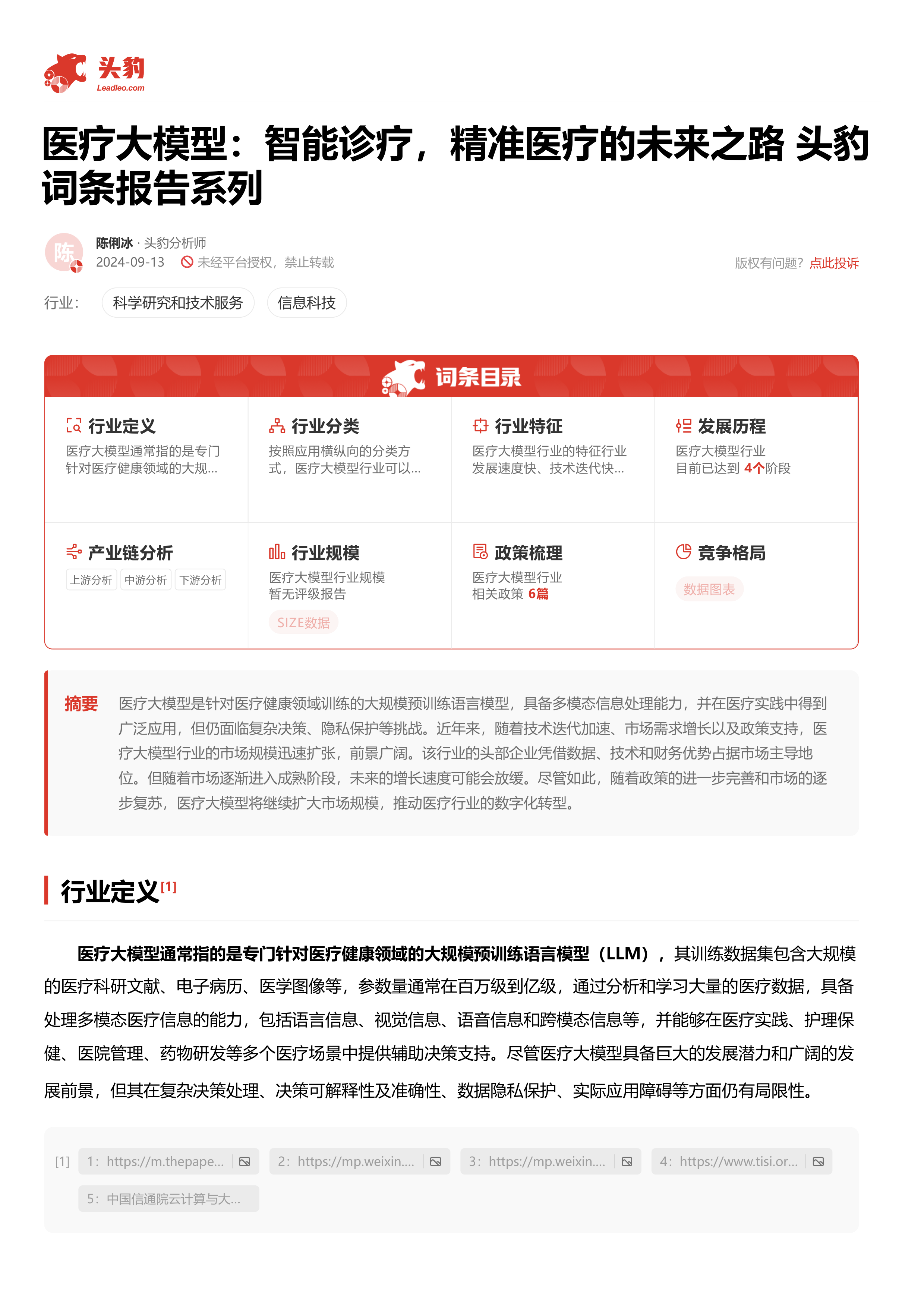 医疗大模型:智能诊疗,精准医疗的未来之路 头豹词条报告系列