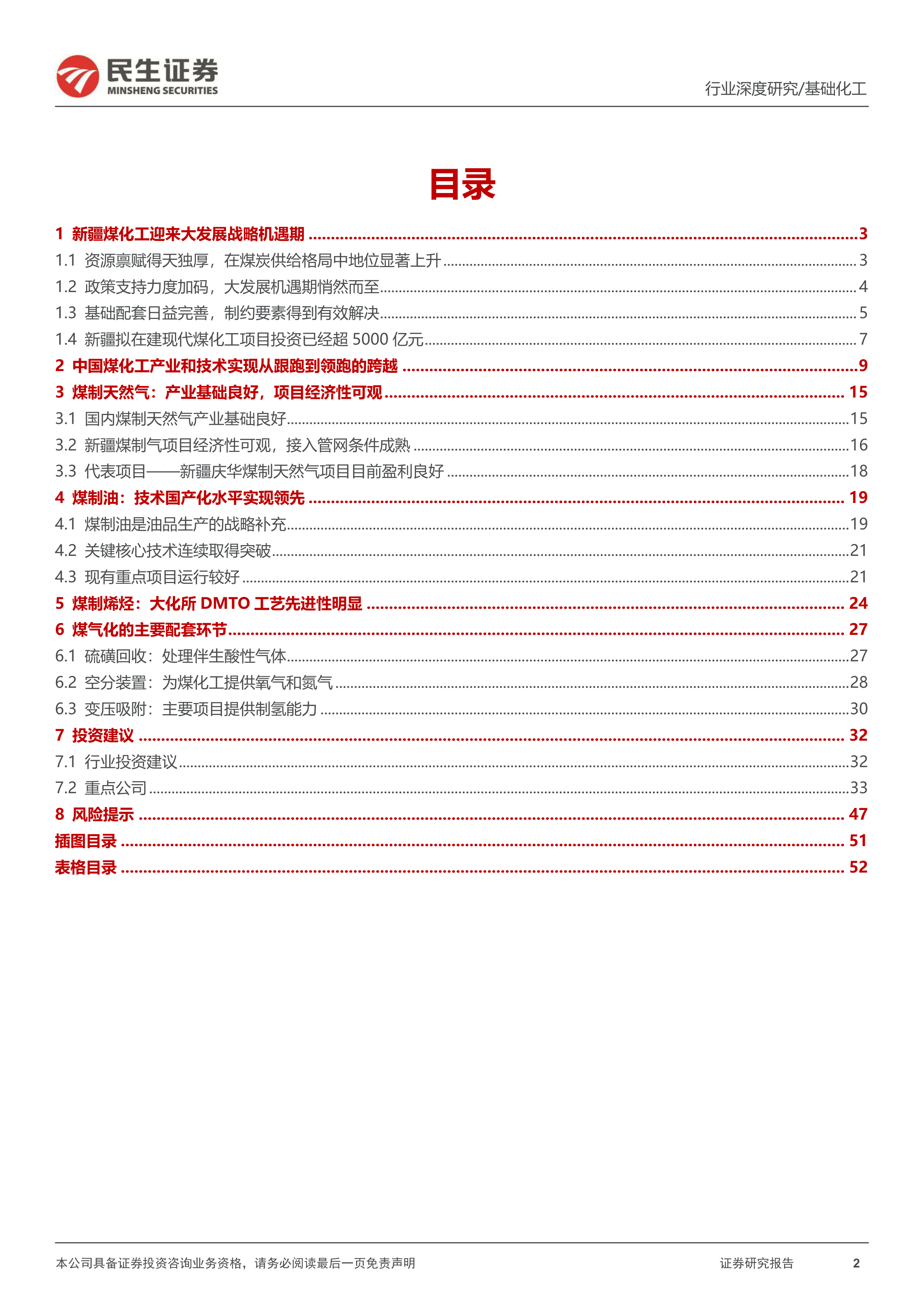 本报告对新疆煤化工产业的市场前景进行了深入分析,认为新疆煤化工产业正处于大发展机遇期,并基于新疆丰富的煤炭资源、国家政策的支持以及国内煤化工技术的领先地位,对新疆煤化工市场进行了深入分析,并推荐了六家重点公司作为投资标的。 报告同时指出了新疆煤化工发展面临的风险,为投资者提供了全面的参考信息。 报告内容涵盖了新疆煤化工产业链的各个环节,从资源禀赋到技术创新,从项目投资到公司分析,为投资者提供了较为完整的投资决策依据。 但需注意,报告中的预测和建议仅供参考,投资者应根据自身情况进行独立判断。
