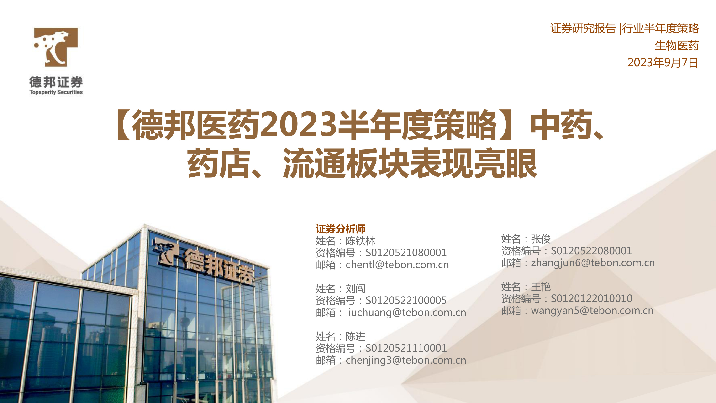 【德邦医药2023半年度策略】中药、药店、流通板块表现亮眼