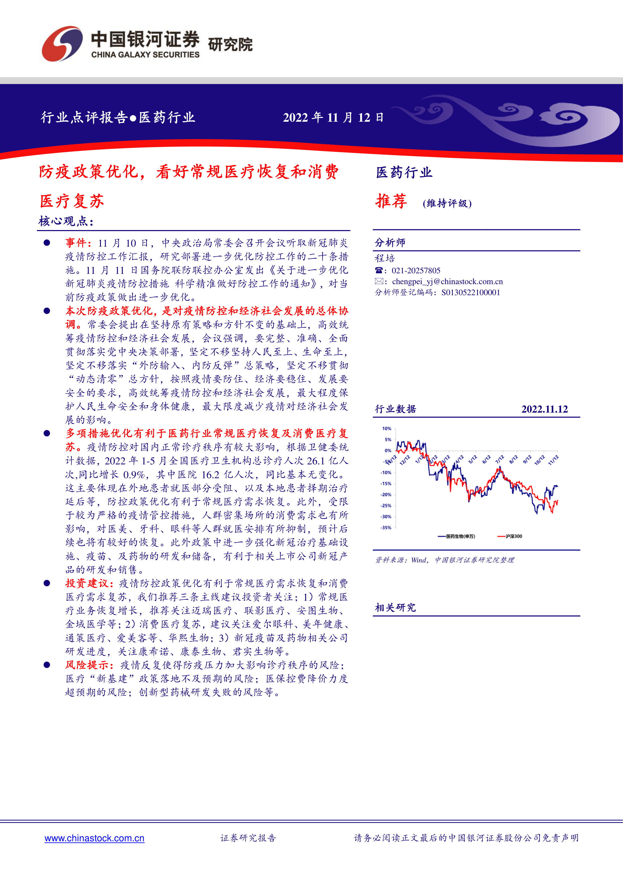 医药行业点评报告:防疫政策优化,看好常规医疗恢复和消费医疗复苏