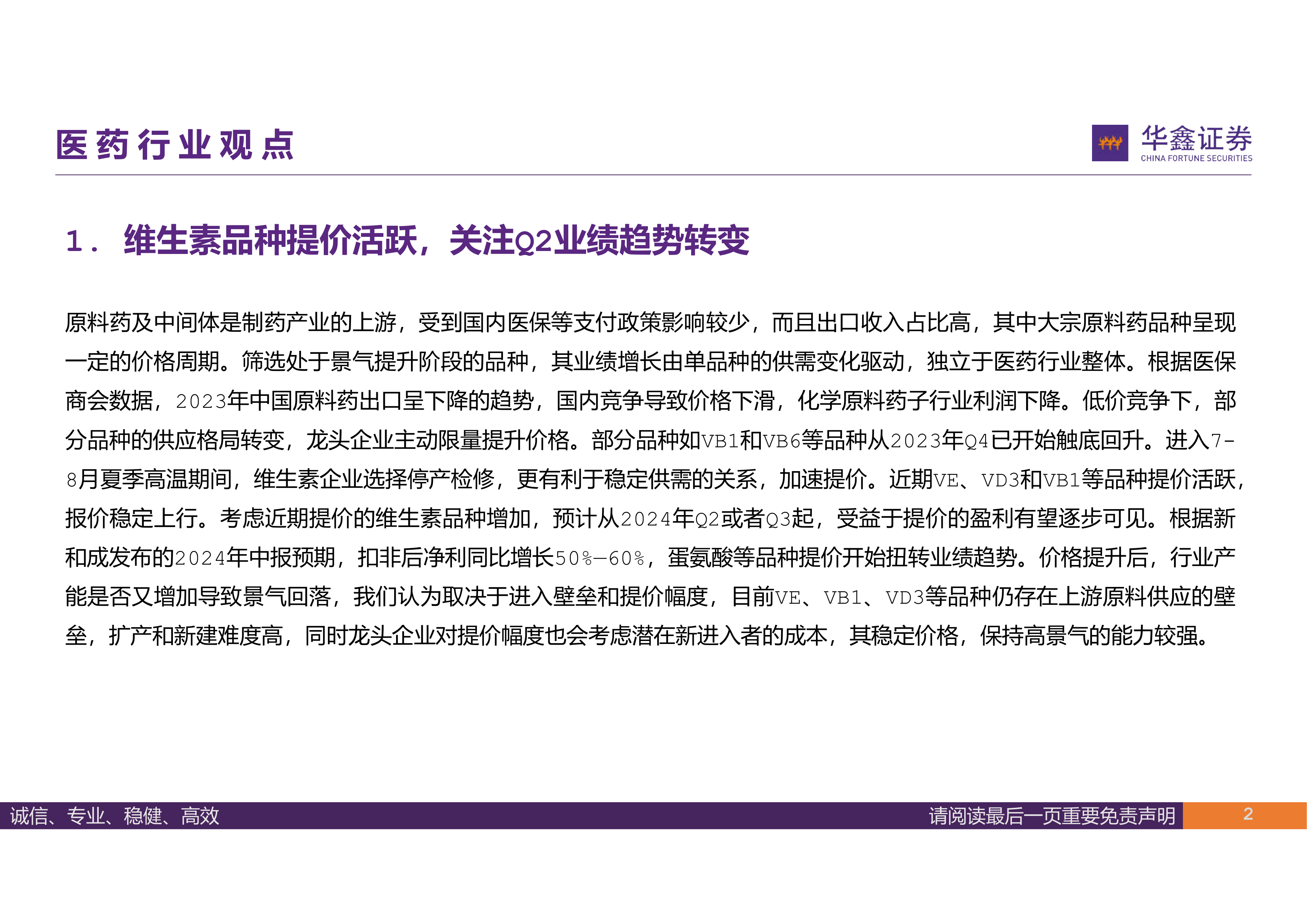 1. 维生素品种提价活跃,关注Q2业绩趋势转变