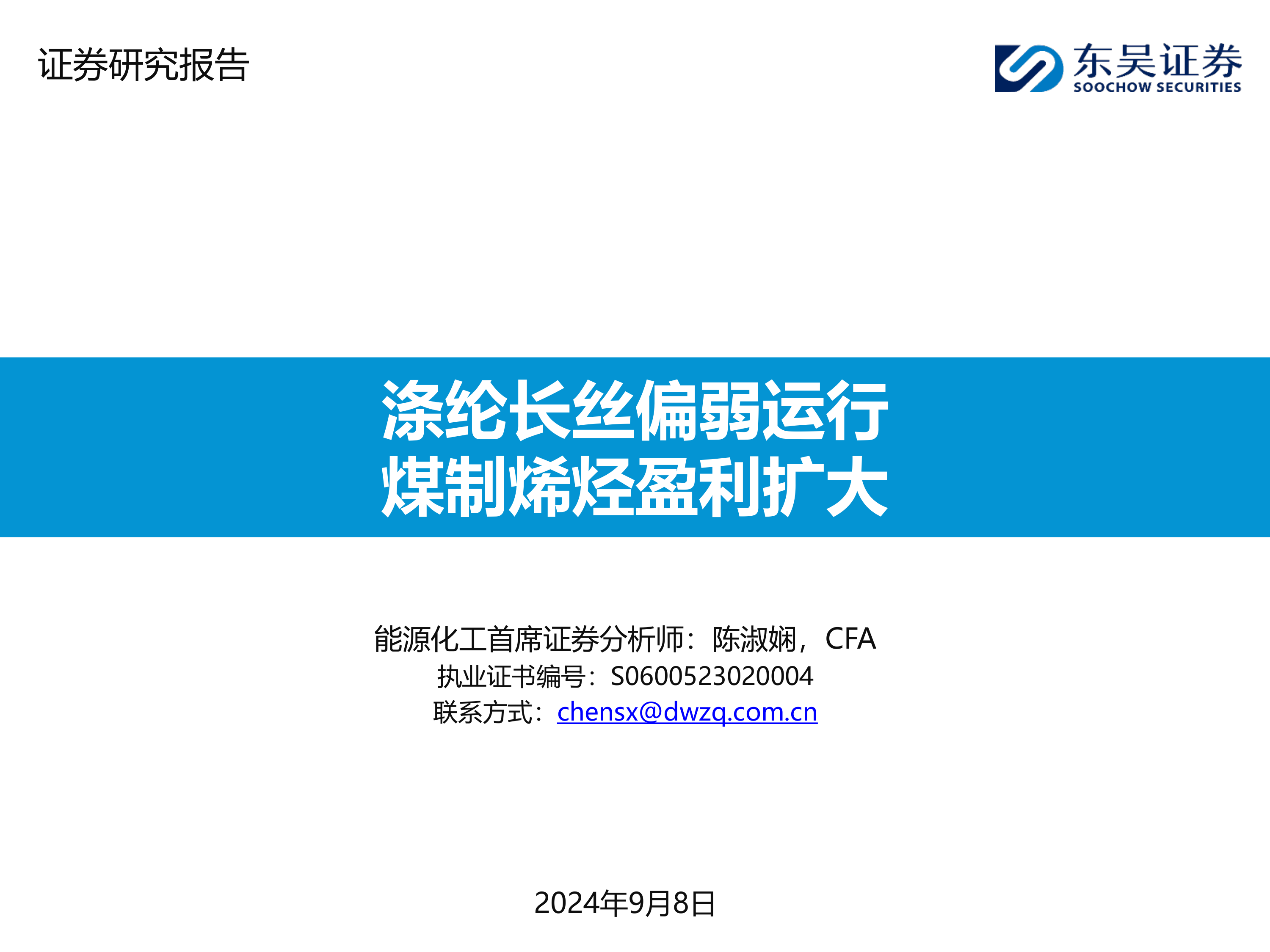 化工周报:涤纶长丝偏弱运行 煤制烯烃盈利扩大