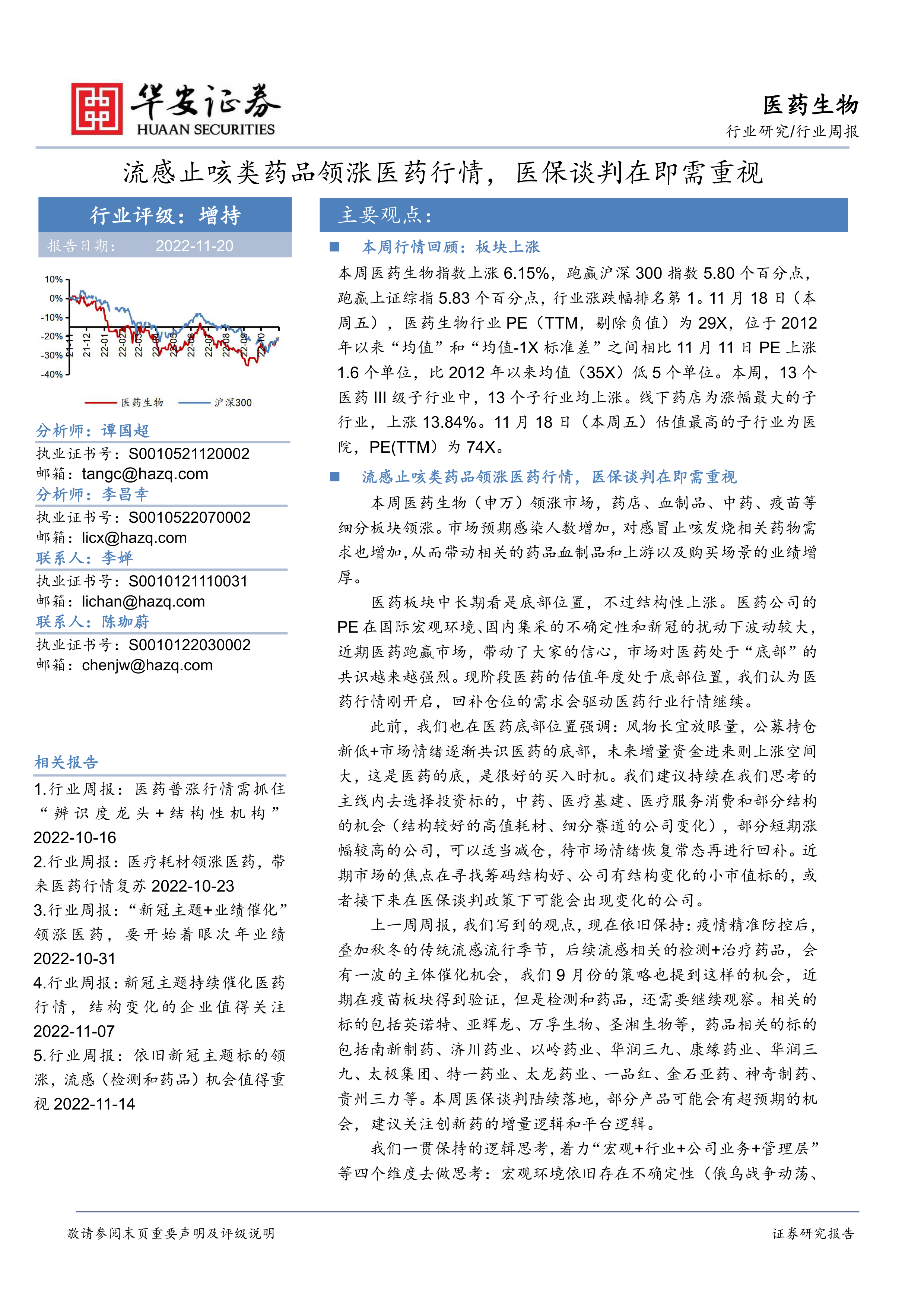 医药生物行业周报:流感止咳类药品领涨医药行情,医保谈判在即需重视