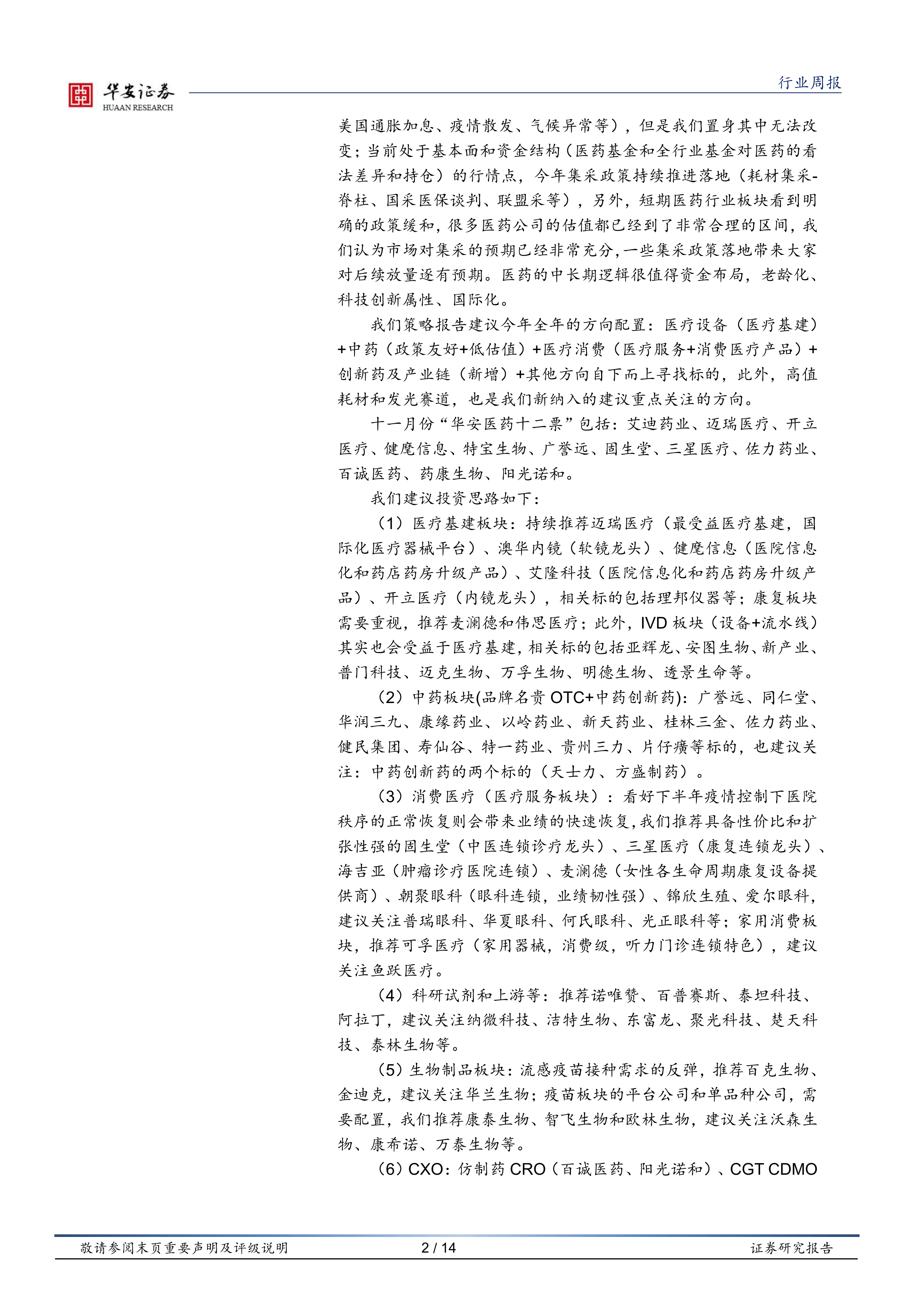 报告还列出了“华安医药十二票”,包括艾迪药业、迈瑞医疗等。