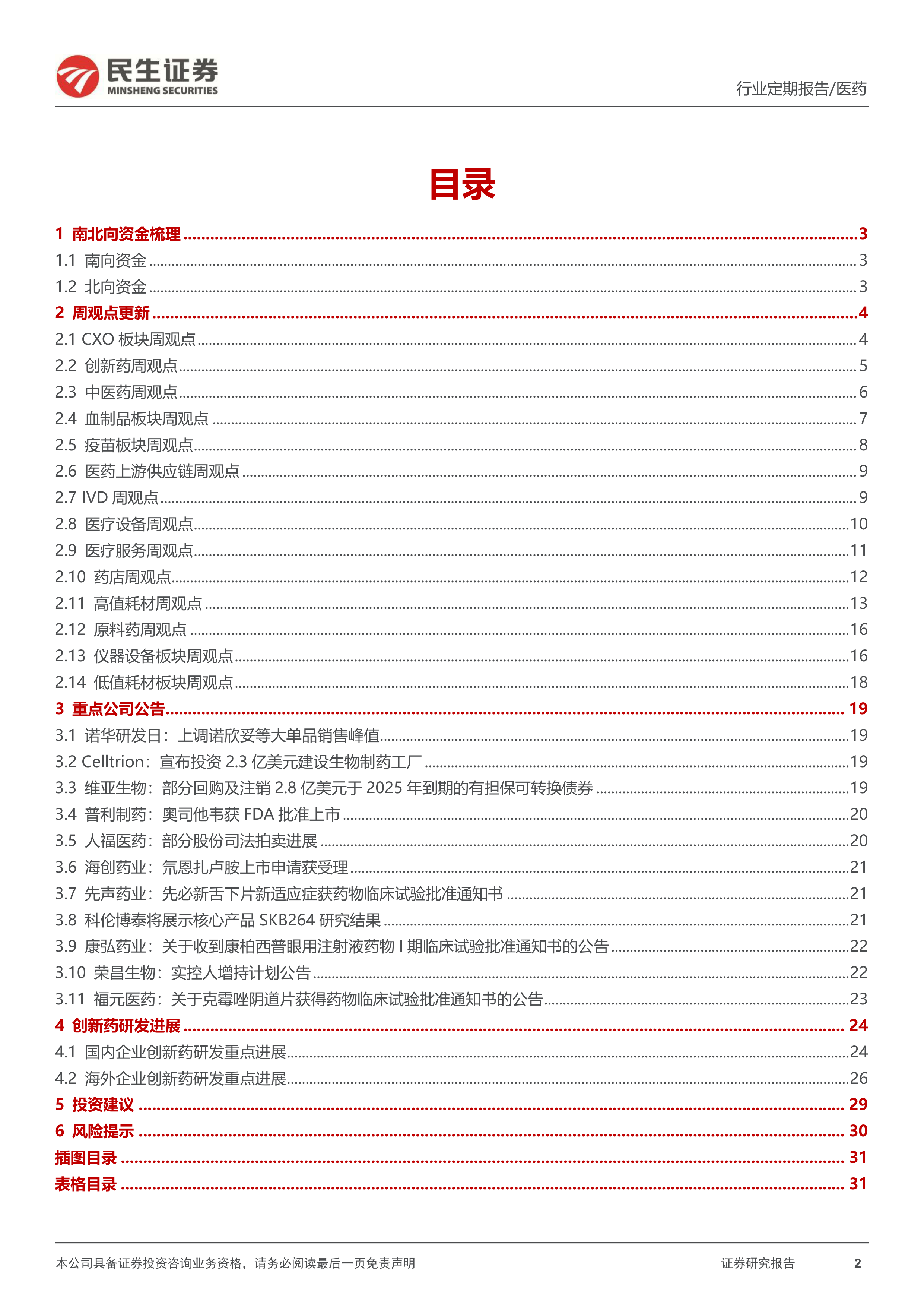 风险提示:集采压力大于预期风险;产品研发进度不及预期风险;竞争加剧风险;政策监管环境变化风险;药物研发服务市场需求下降的风险。