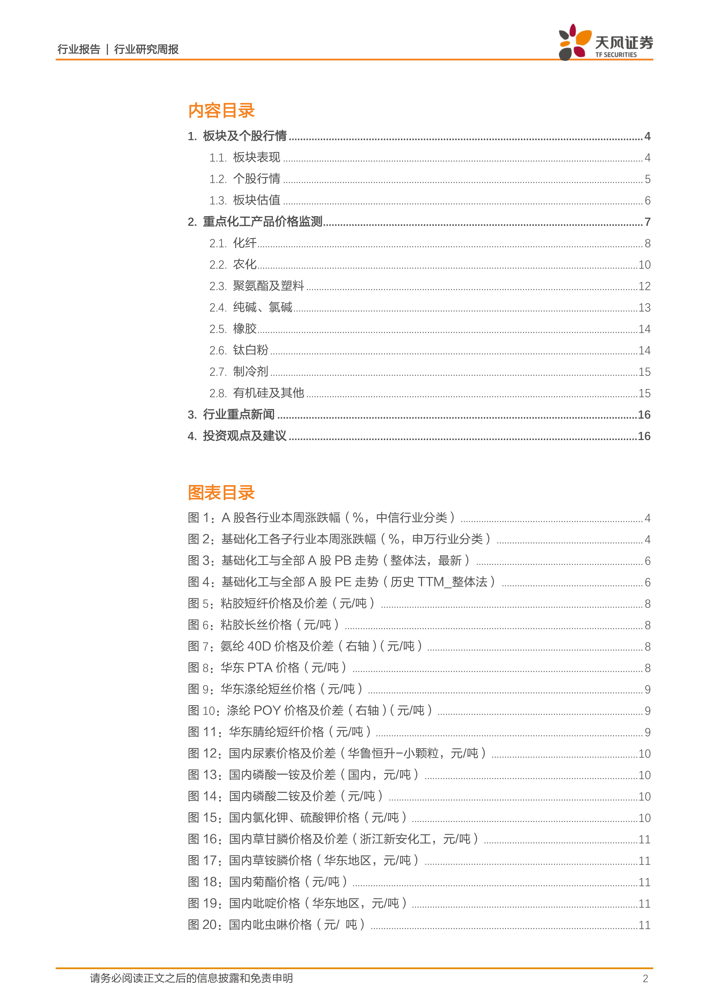 报告对多个重点化工产品的价格进行了监测,包括化纤、农化、聚氨酯、纯碱、氯碱、橡胶、钛白粉、制冷剂以及有机硅等。数据显示,维生素B1、2%生物素、维生素VE等产品价格大幅上涨,而丁二烯、甲醇、环氧丙烷等产品价格则出现下跌。这些数据直观地反映了市场供需变化以及疫情对不同产品的影响程度。 报告中提供了大量的图表,详细展示了各个产品价格的走势,便于投资者进行更深入的分析。