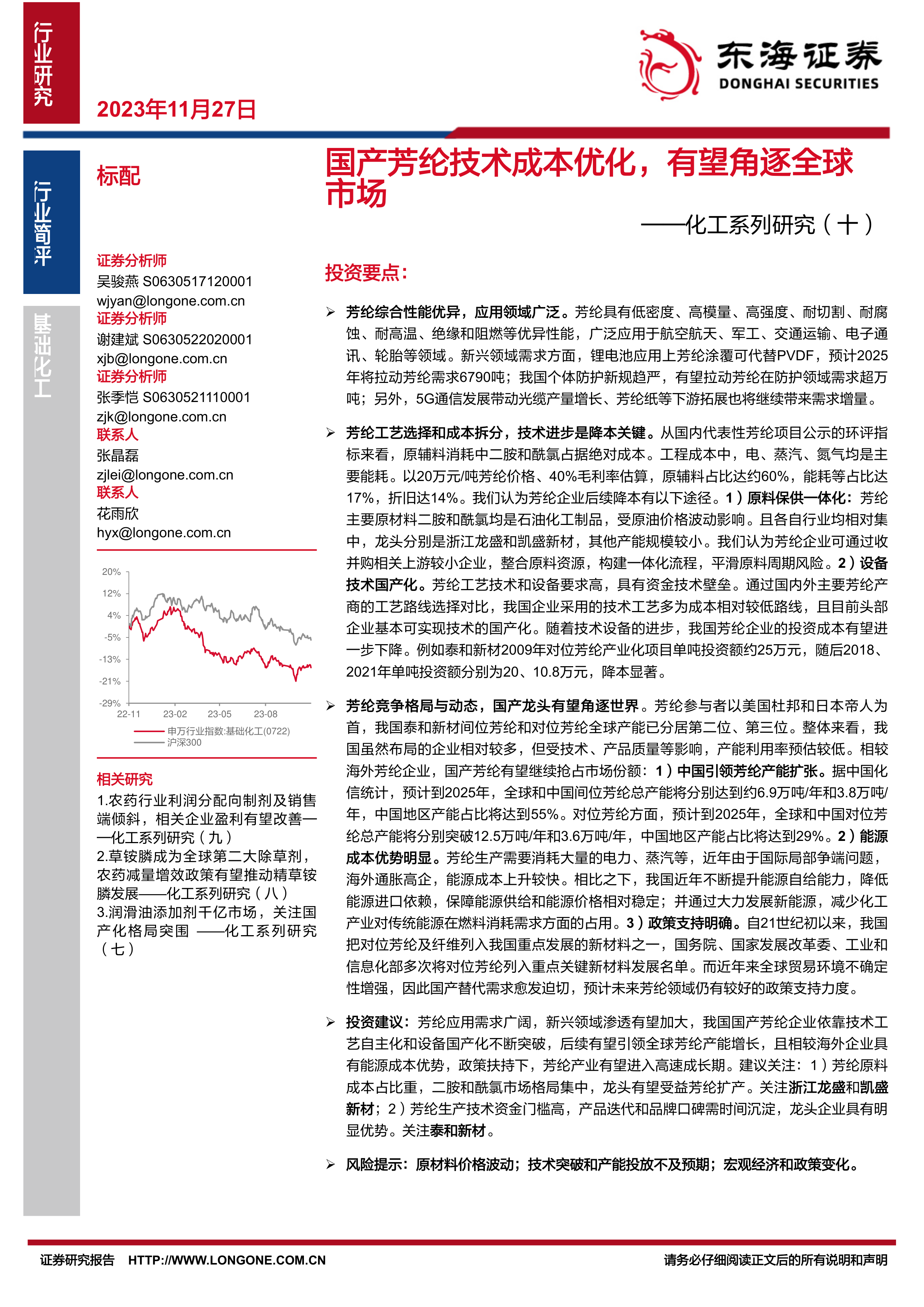 化工系列研究(十):国产芳纶技术成本优化,有望角逐全球市场