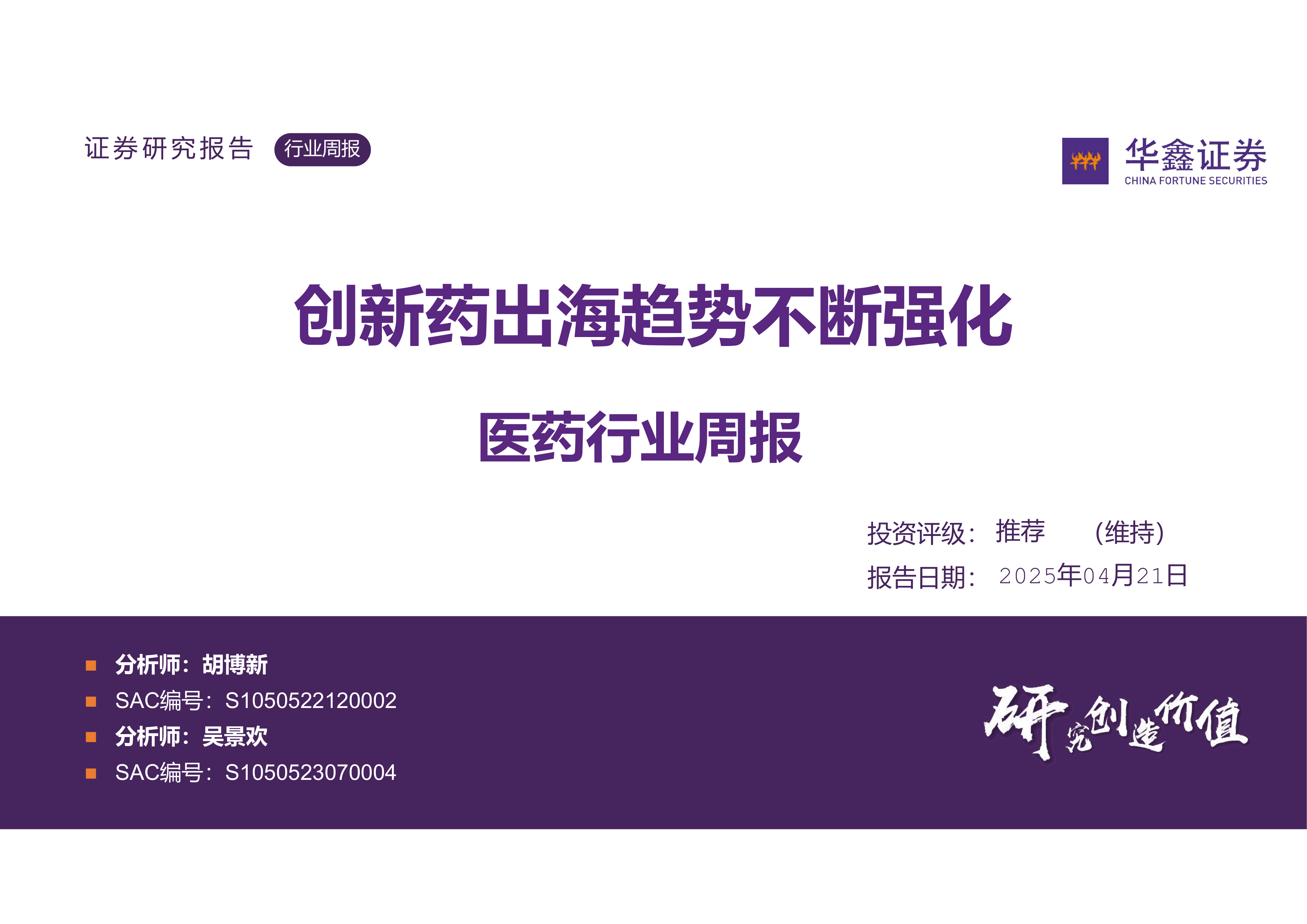 本报告的核心观点是:中国创新药出海趋势持续强化,在多个领域展现出巨大潜力,并面临着机遇与挑战。具体而言,报告分析了创新药出海交易的火热程度、口服GLP-1小分子药物的进展、痛风治疗市场的巨大潜力、血制品供应格局因关税变化而可能发生的改变,以及原料药拓展新应用方向的趋势。报告同时推荐了部分受益于这些趋势的医药公司。