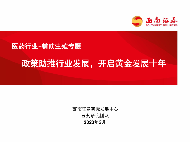 医药行业-辅助生殖专题:政策助推行业发展,开启黄金发展十年