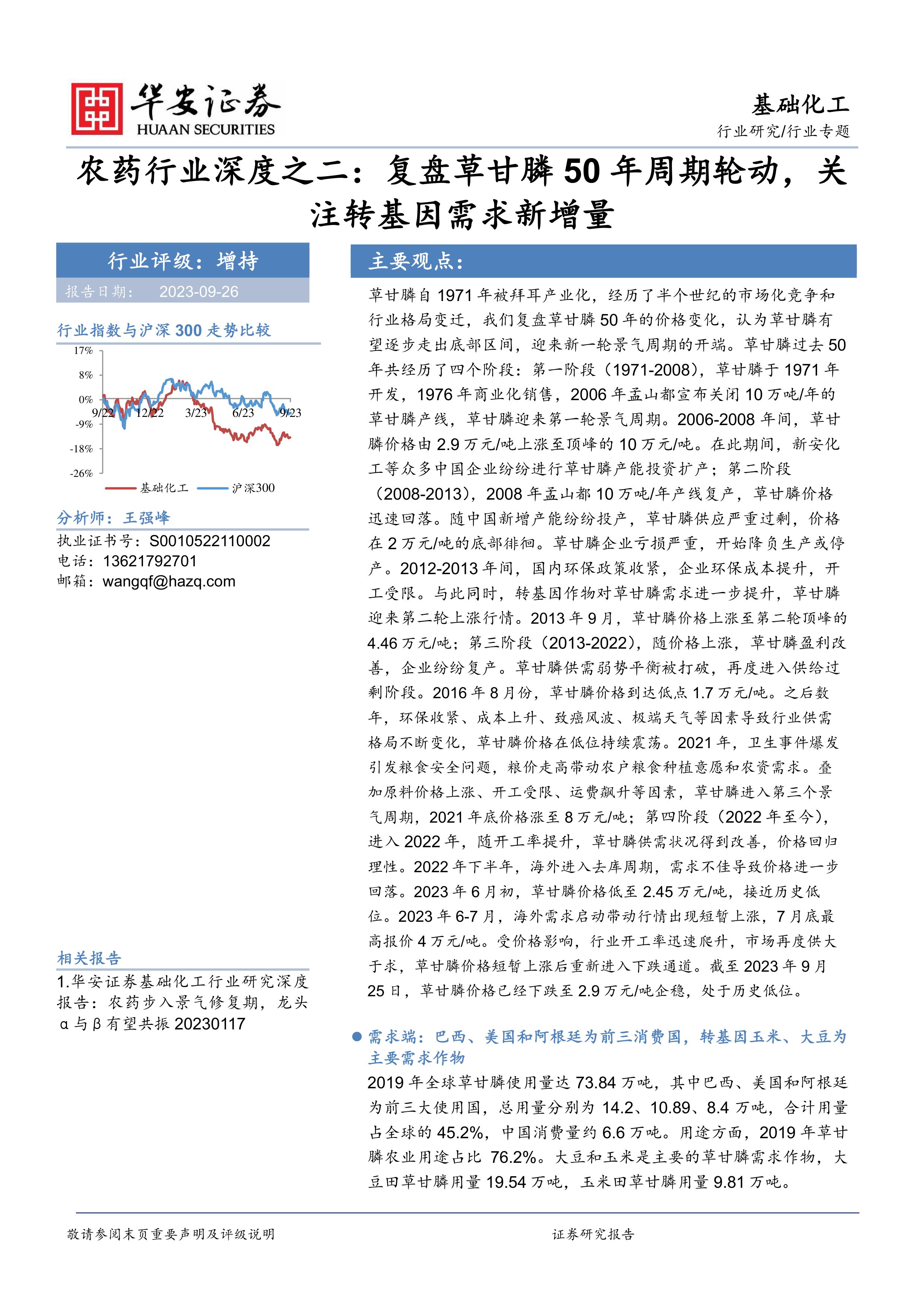 农药行业深度之二:复盘草甘膦50年周期轮动,关注转基因需求新增量