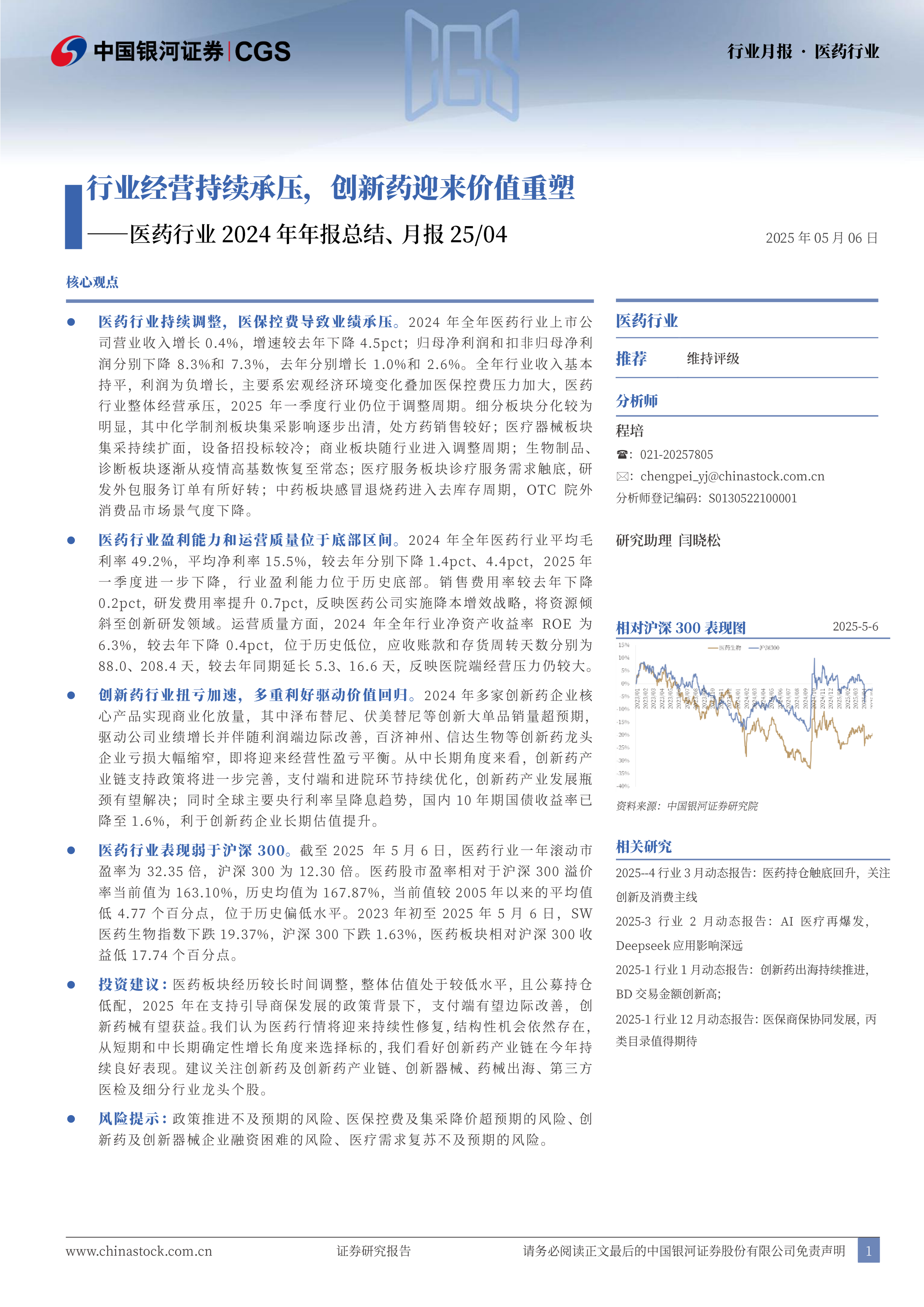 医药行业2024年年报总结、月报25/04:行业经营持续承压,创新药迎来价值重塑