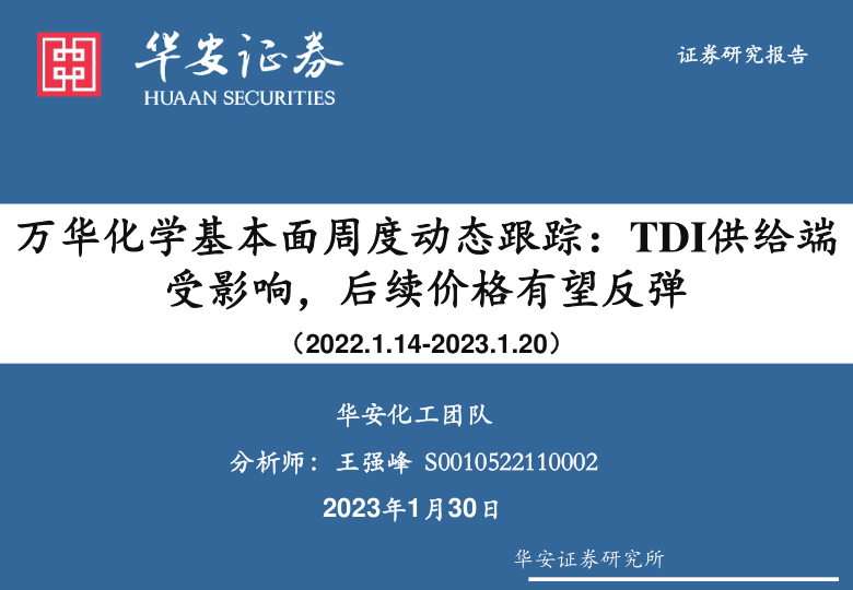 万华化学基本面周度动态跟踪:TDI供给端受影响,后续价格有望反弹