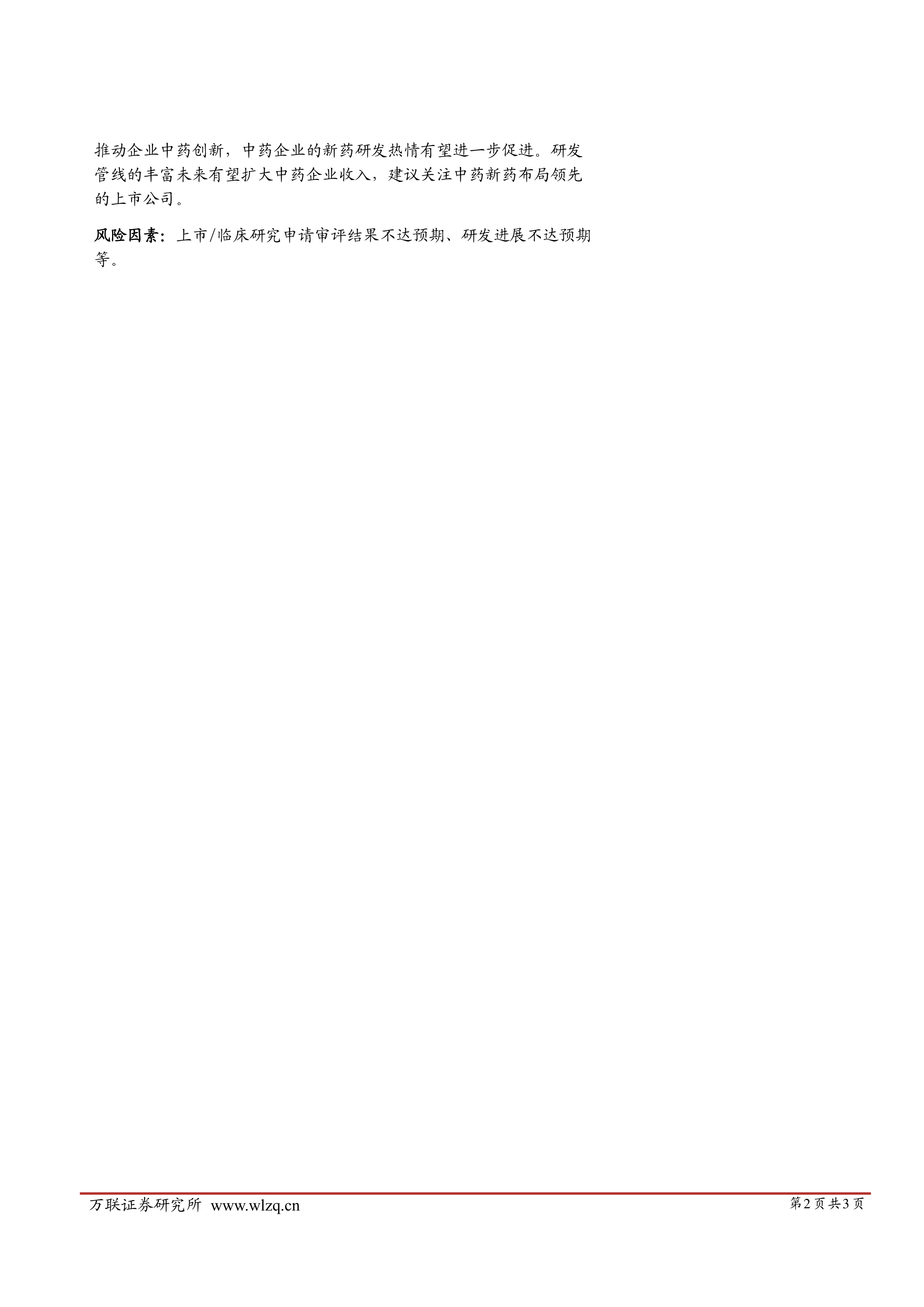 报告建议关注中药新药布局领先的上市公司。 然而,投资者需注意,上市/临床研究申请审评结果不达预期、研发进展不达预期等风险因素都可能影响投资收益。