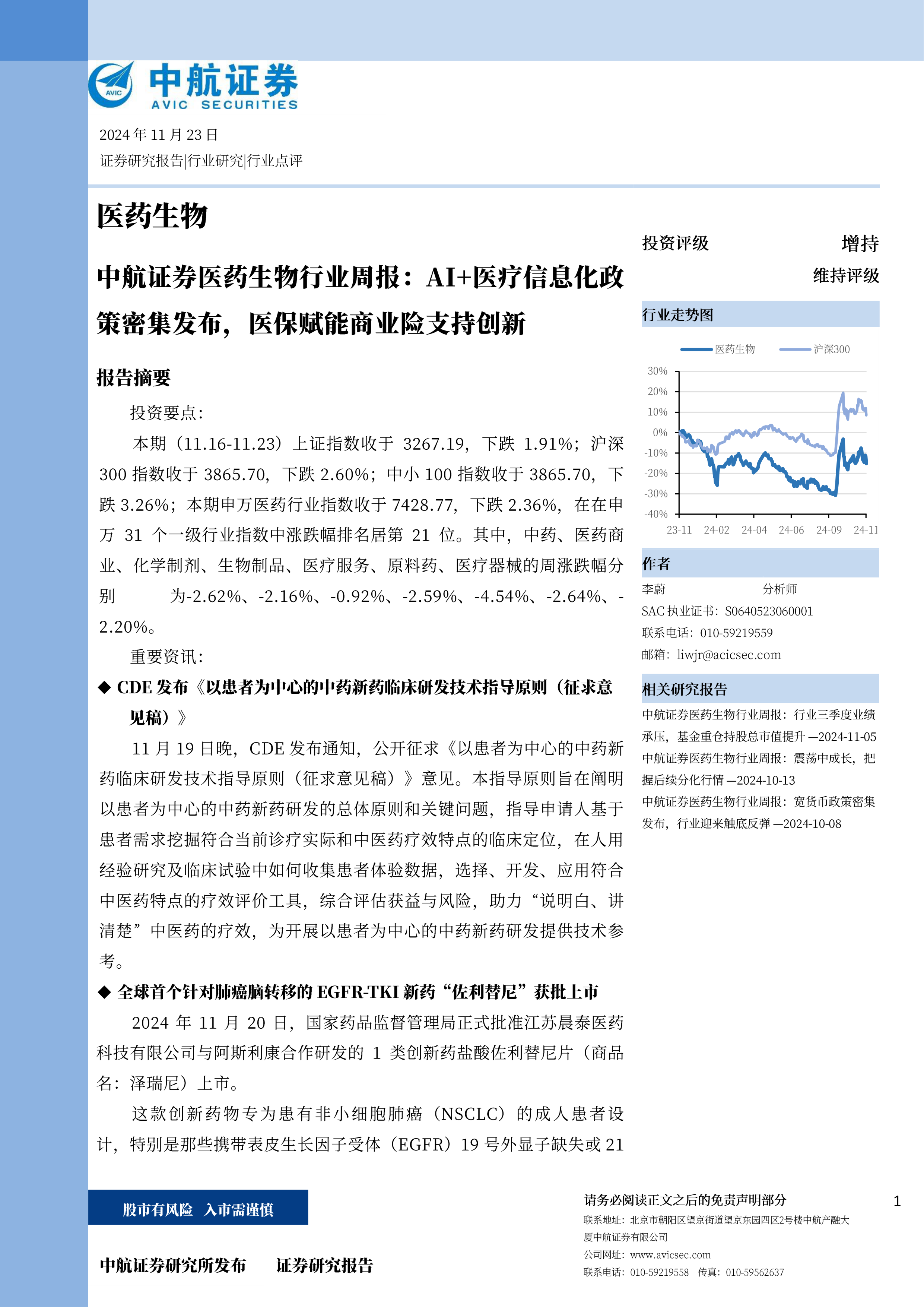 医药生物行业周报:AI+医疗信息化政策密集发布,医保赋能商业险支持创新