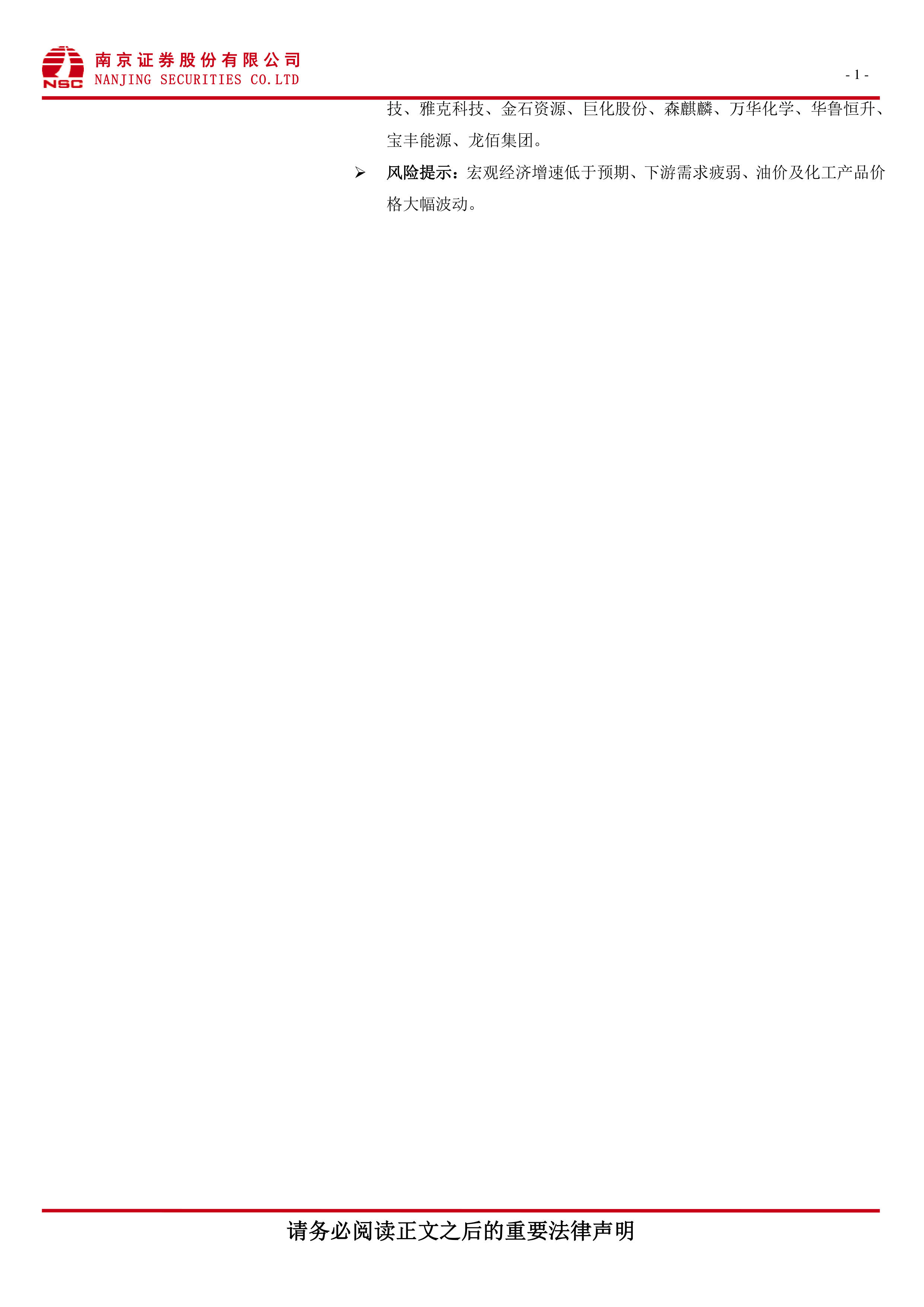 风险提示:宏观经济增速低于预期、下游需求疲弱、油价及化工产品价格大幅波动。