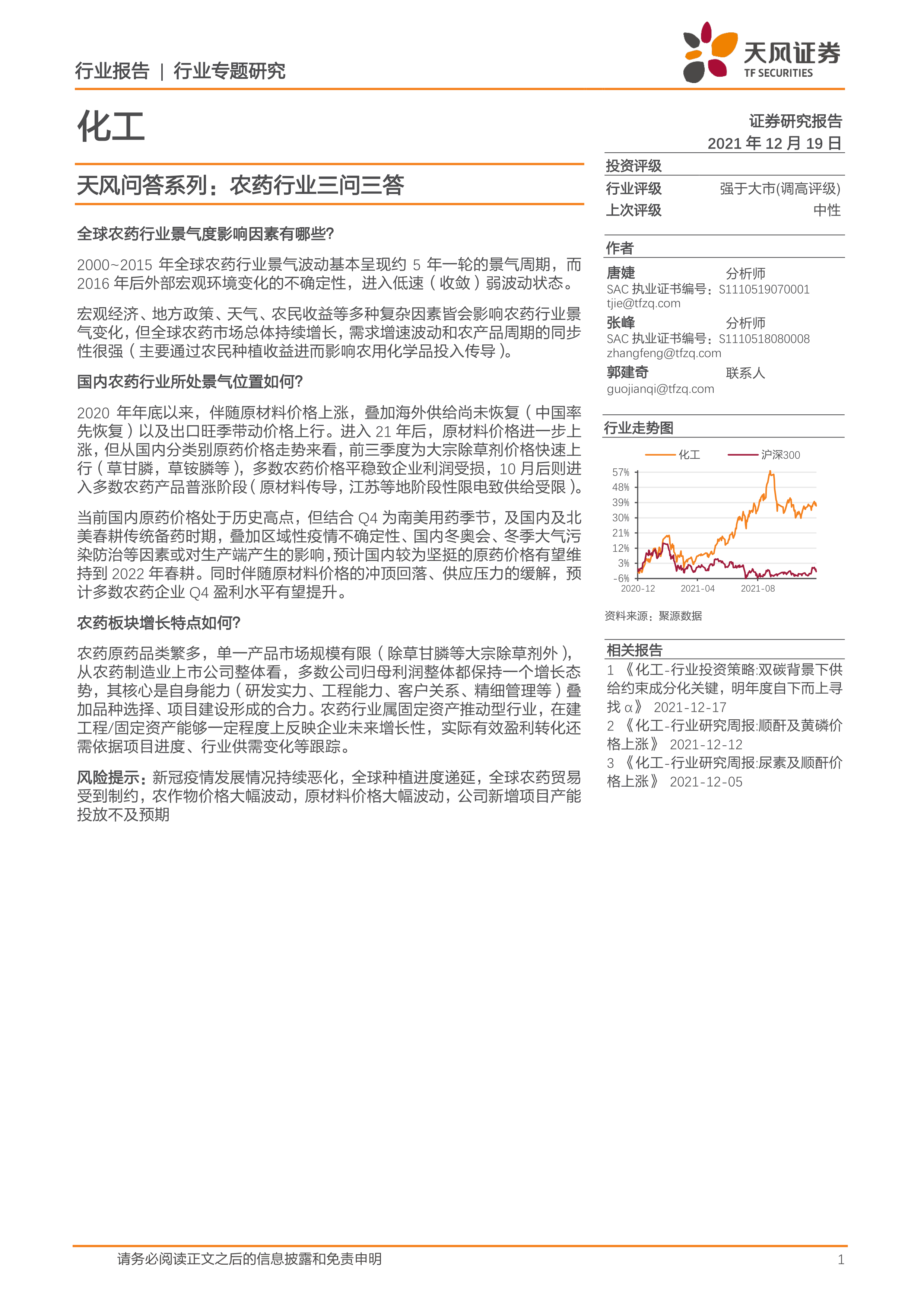 化工-天风问答系列:农药行业三问三答