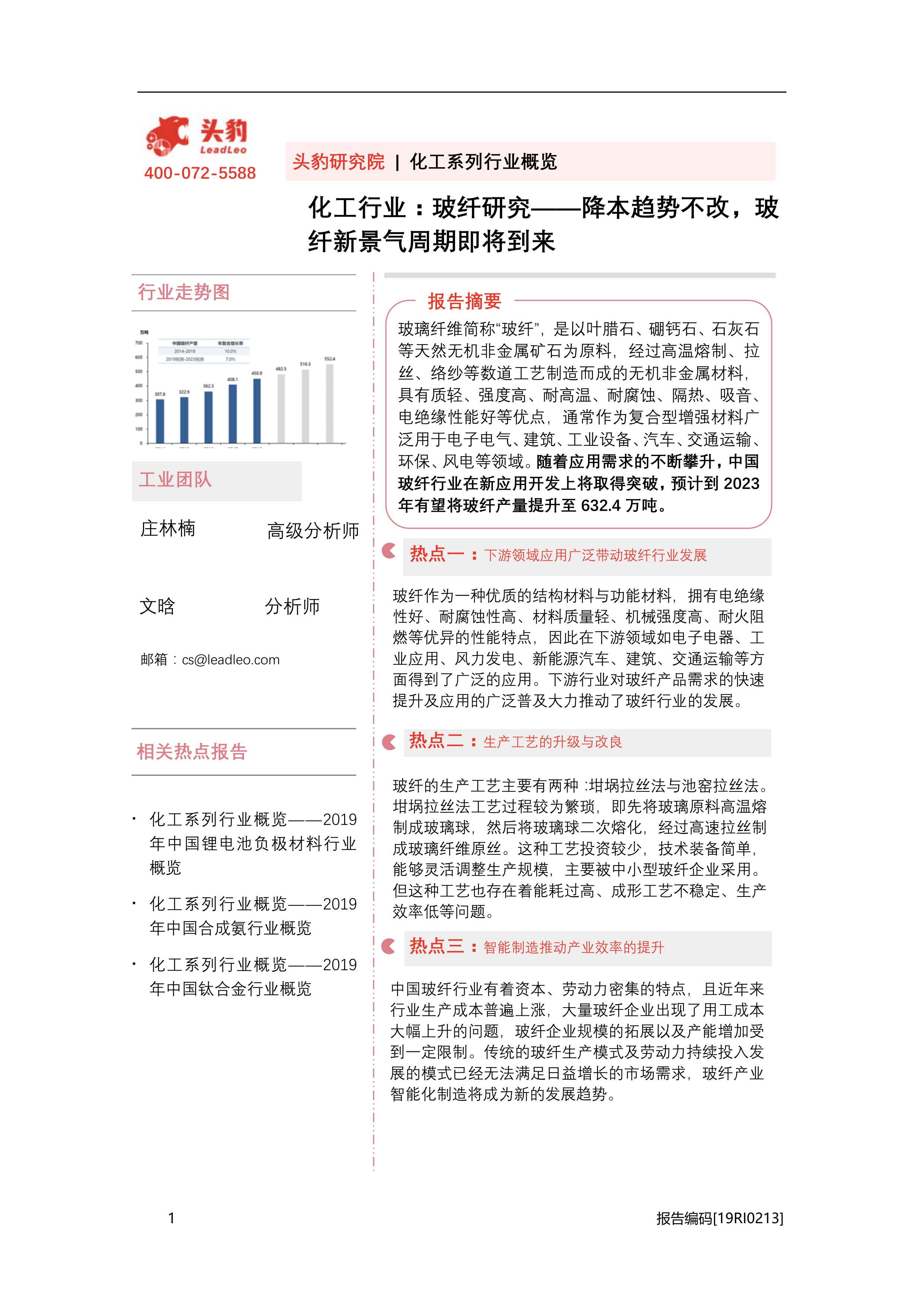 化工行业:玻纤研究——降本趋势不改,玻纤新景气周期即将到来