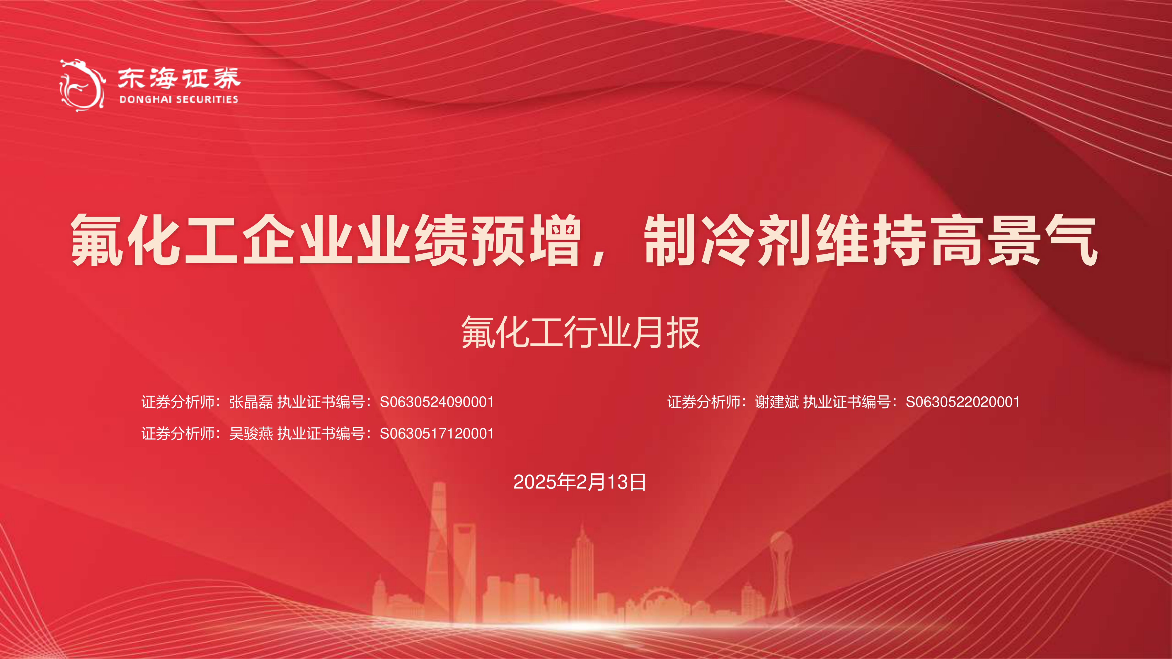 本报告通过对2025年1月氟化工行业市场数据的分析,特别是对制冷剂和含氟聚合物市场价格、产量、库存等指标的深入研究,以及对几家主要氟化工企业业绩预增情况的解读,得出结论:制冷剂市场景气度持续向好,相关企业盈利能力有望大幅提升。 然而,投资者仍需关注报告中提到的潜在风险,谨慎决策。 报告数据主要来源于百川盈孚、产业在线、Wind等权威机构,具有较高的可靠性,为投资者提供了较为全面的市场分析和投资参考。