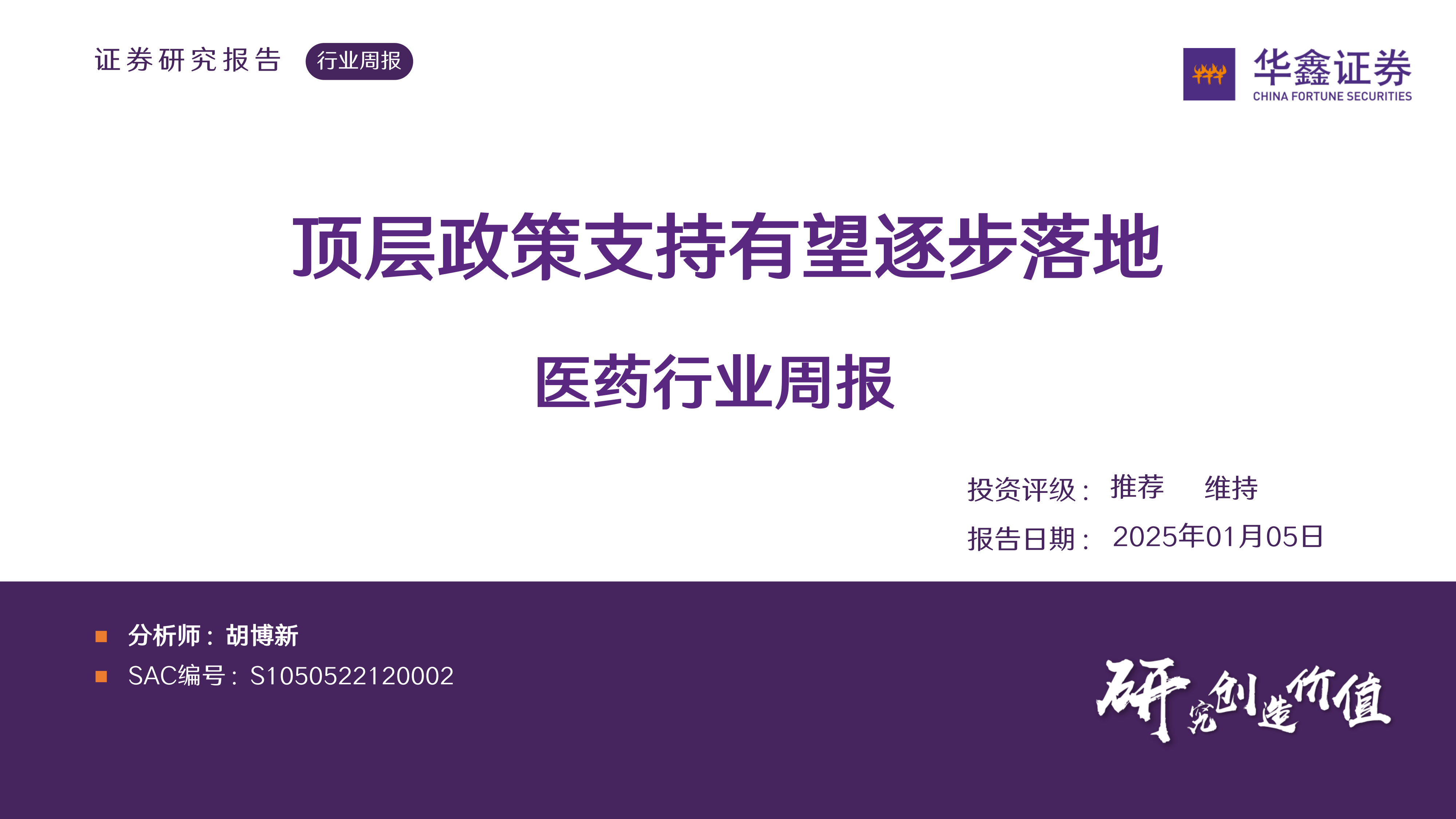本报告的核心观点是:中国医药行业在2024年取得显著进展,并有望在2025年继续保持增长势头。这主要得益于以下几个方面:
