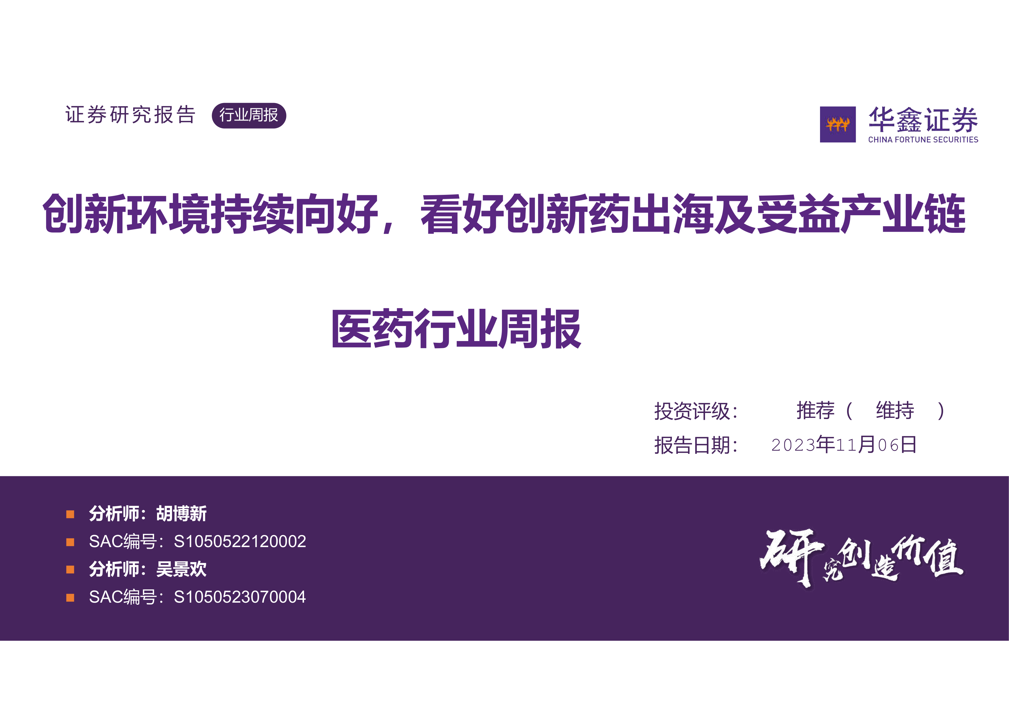 报告列出了华鑫医药团队近期发布的研究报告。