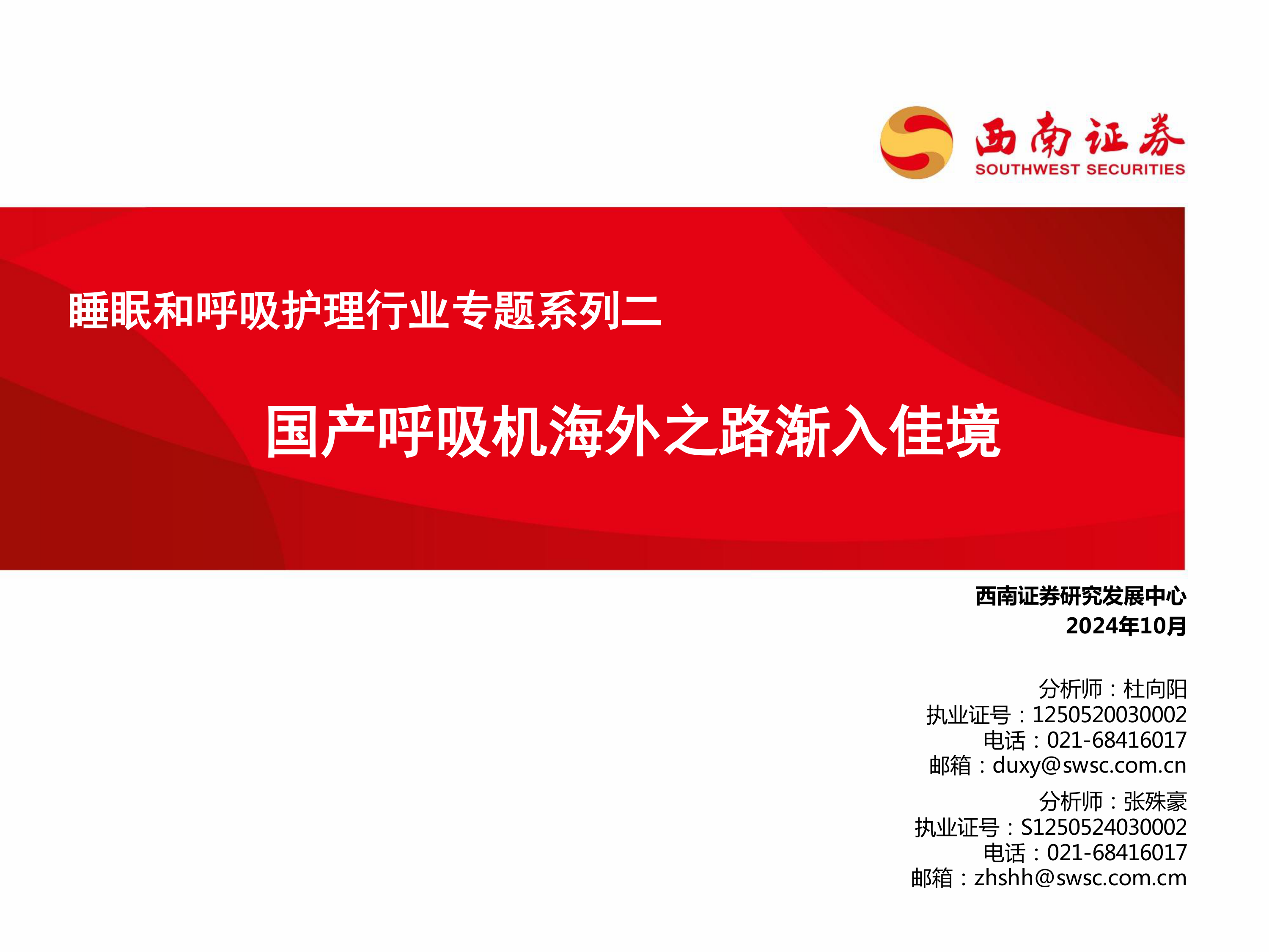 睡眠和呼吸护理行业专题系列二:国产呼吸机海外之路渐入佳境