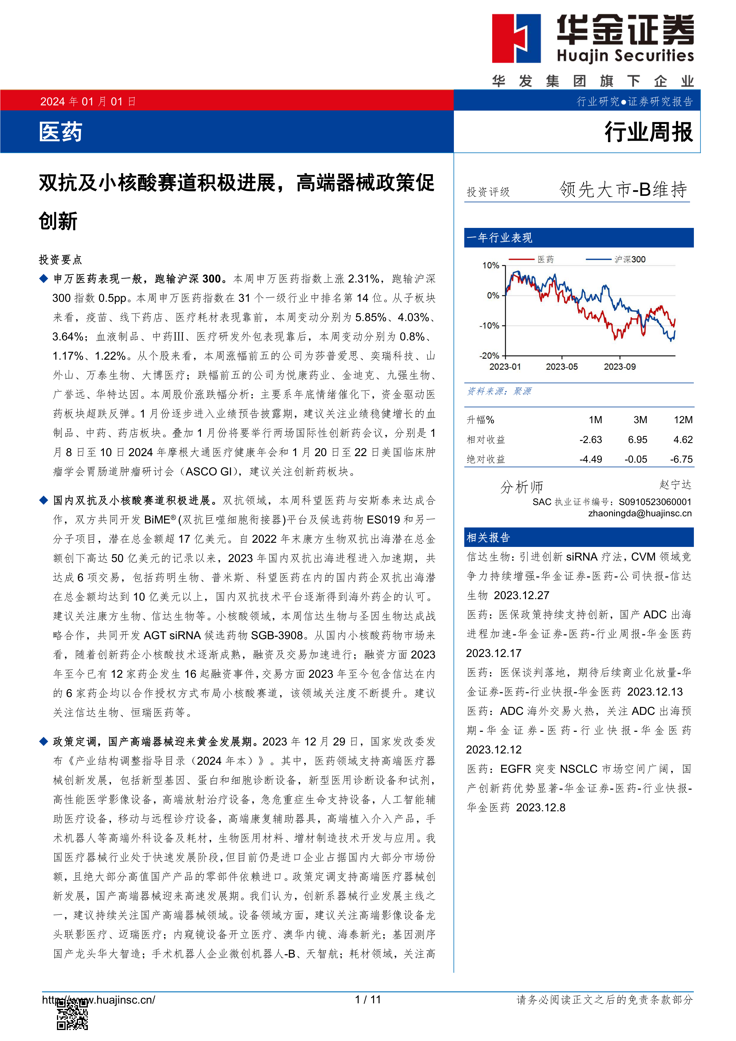 医药行业周报:双抗及小核酸赛道积极进展,高端器械政策促创新