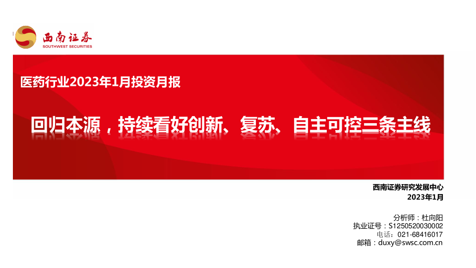 医药行业2023年1月投资月报:回归本源,持续看好创新、复苏、自主可控三条主线