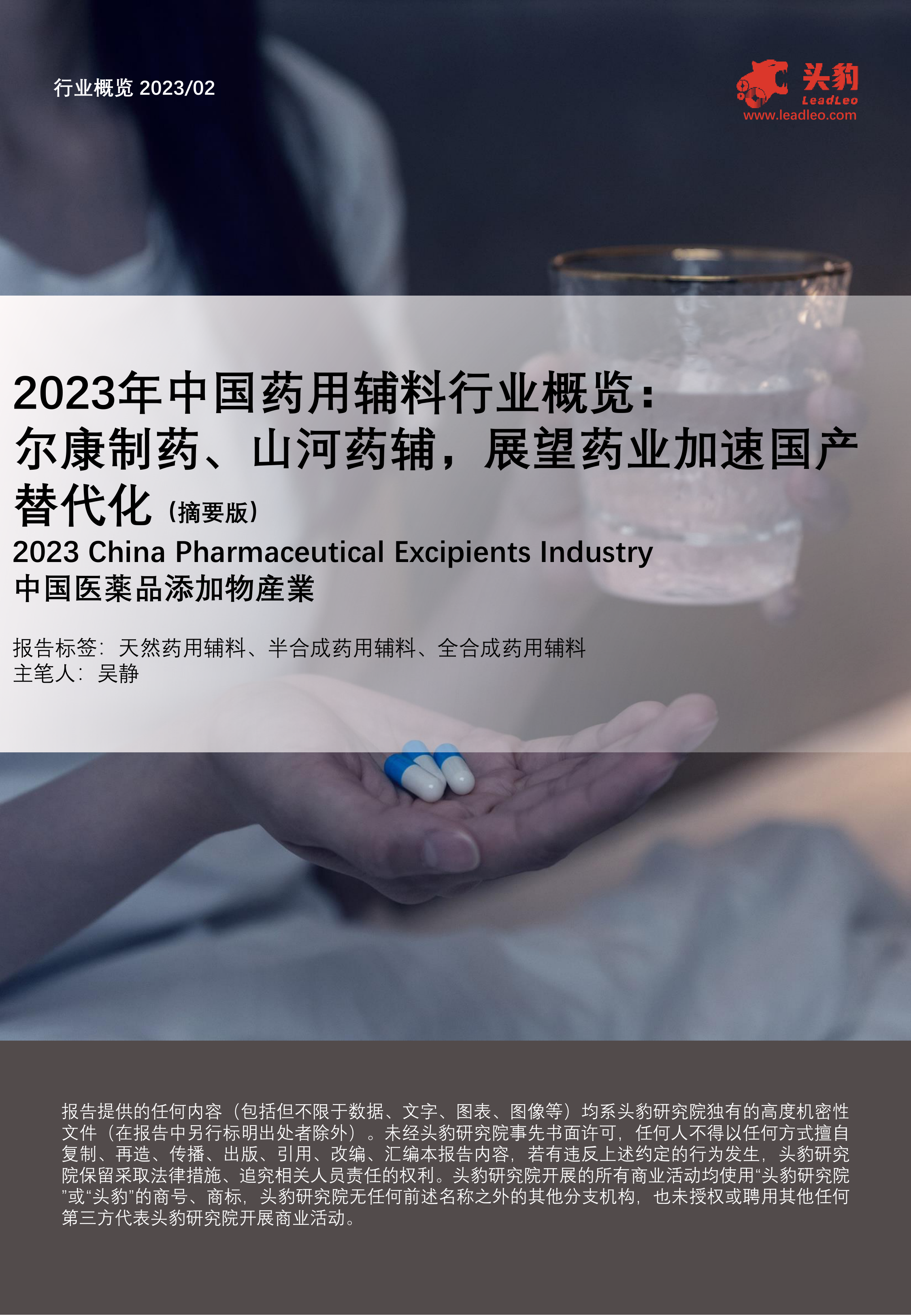 2023年中国药用辅料行业概览:尔康制药、山河药辅,展望药业加速国产替代化(摘要版)