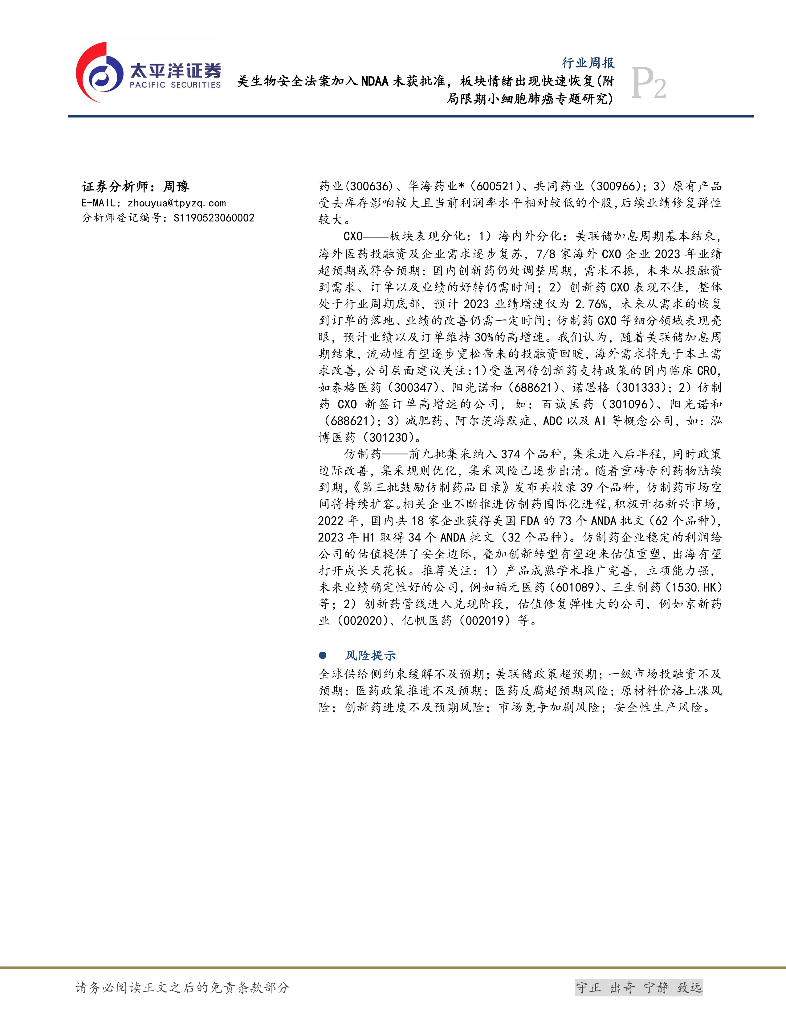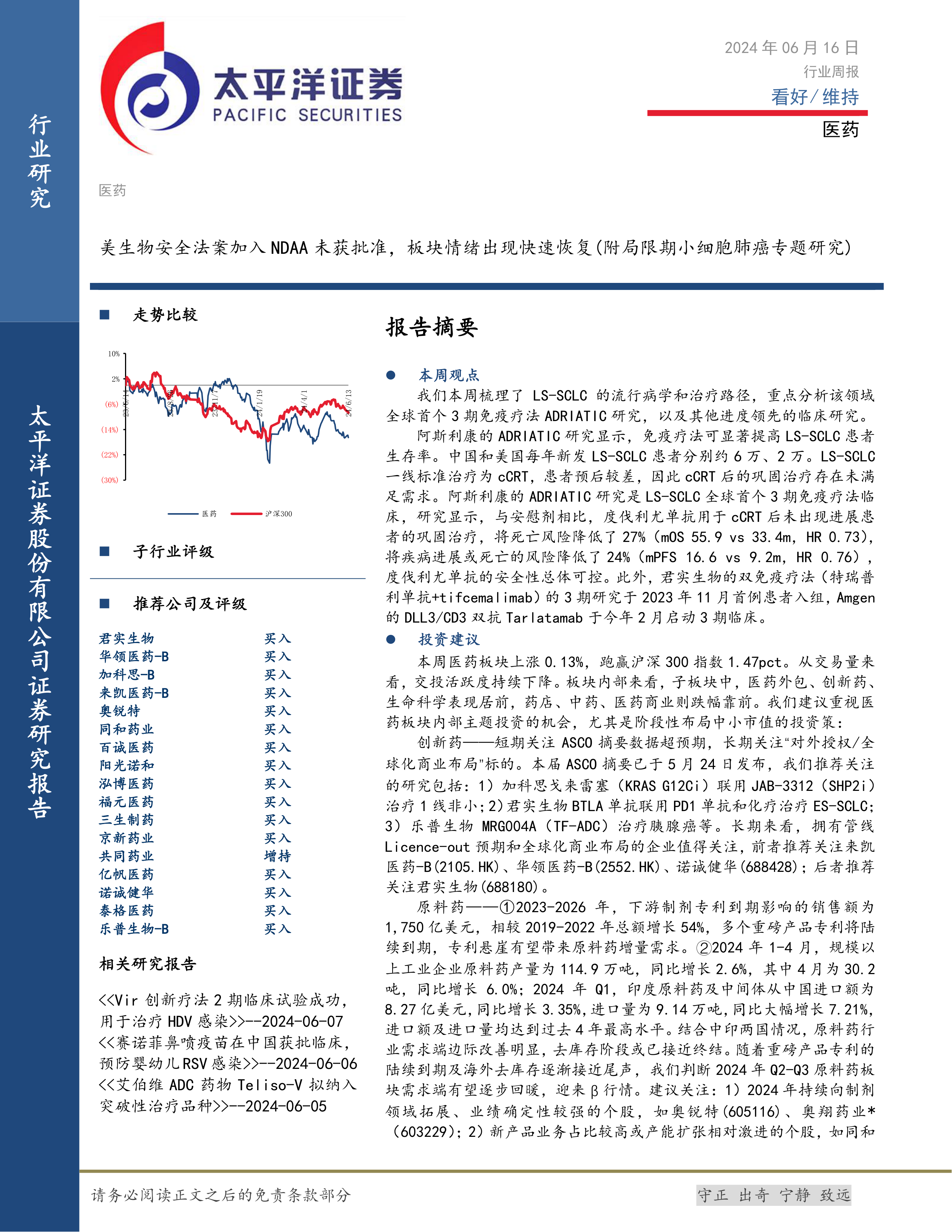 医药行业周报:美生物安全法案加入NDAA未获批准,板块情绪出现快速恢复(附局限期小细胞肺癌专题研究)