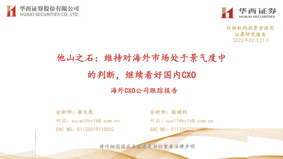 本报告主要从以下几个方面对海外CXO市场进行了分析: